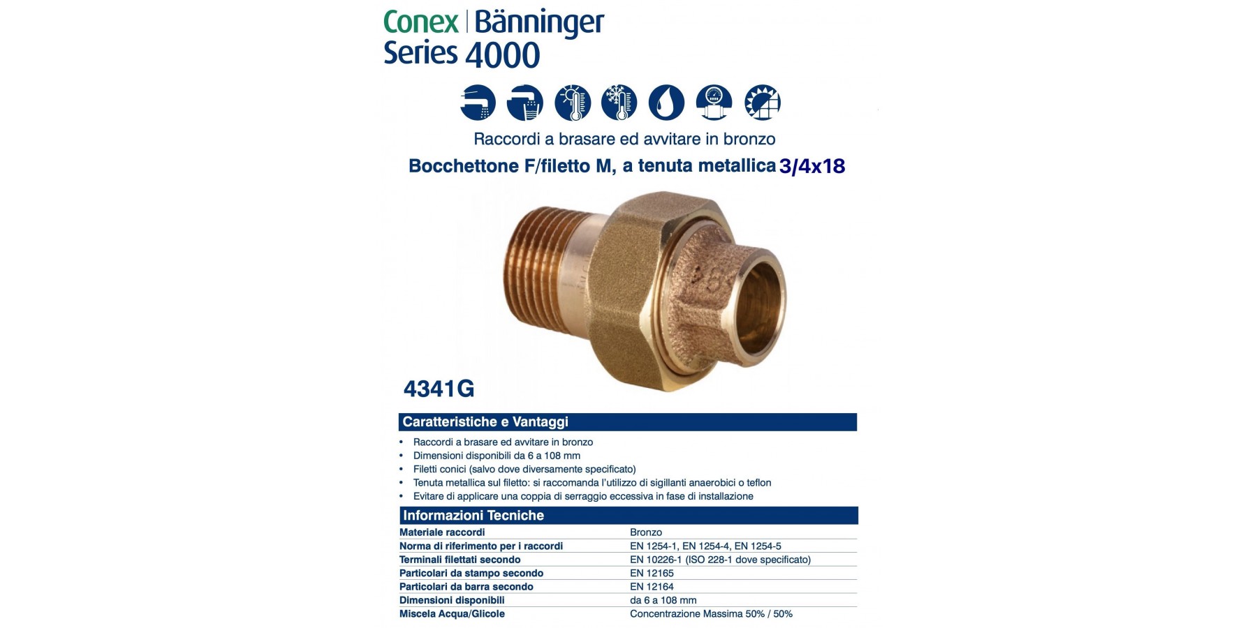 La serie 4000 è un sistema di raccordi a brasare ed avvitare in bronzo.