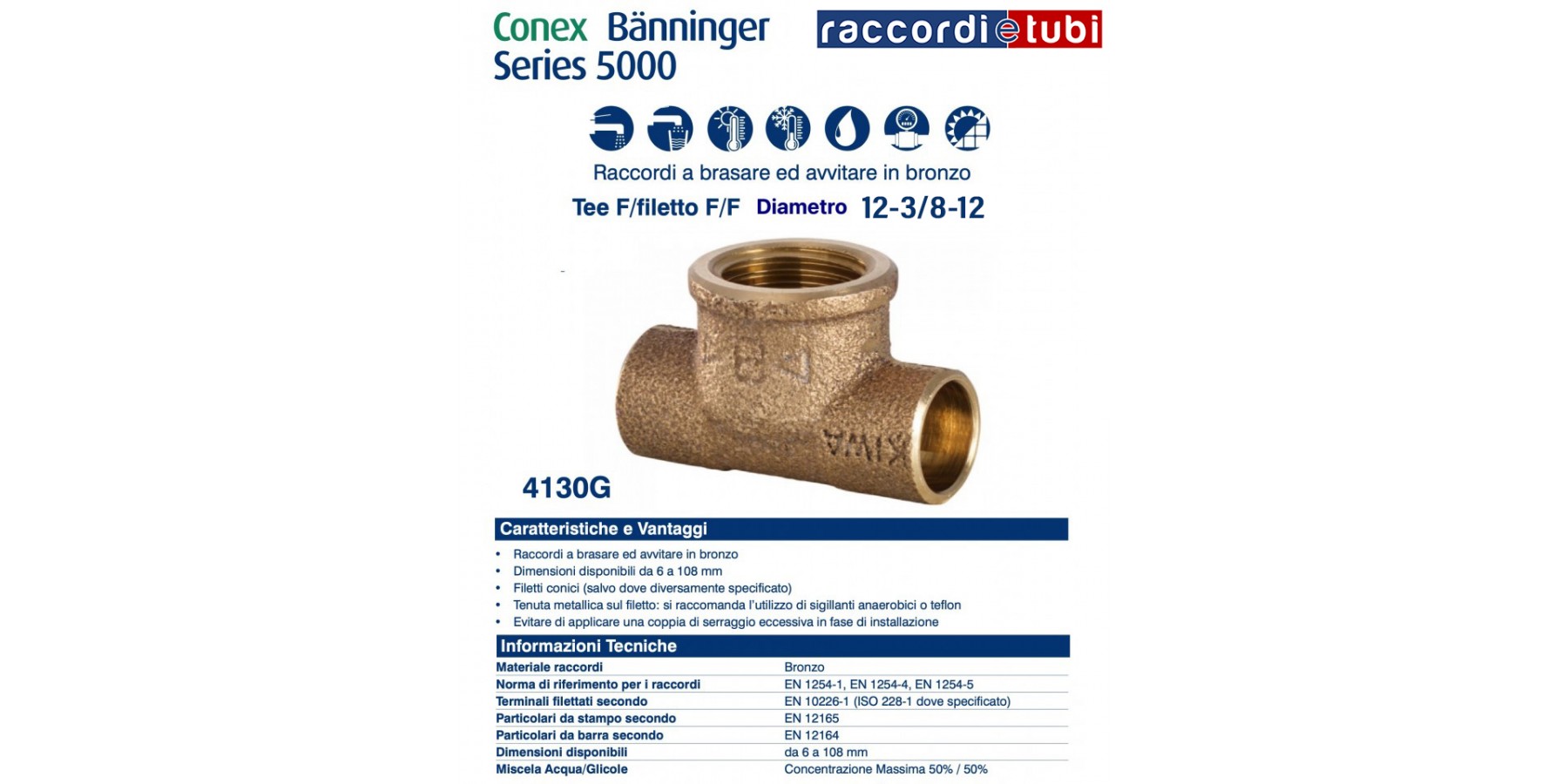 I raccordi della serie 5000 sono prodotti in accordo a UNI EN 1254-1, UNI EN 1254-4 e UNI EN 1254-5 e idonei alla realizzazione di giunzioni in accoppiamento con tubi di rame prodotti secondo UNI EN 1057, UNI EN 12735- 1 e UNI EN 12735-2 . Adatti all'impiego negli impianti di adduzione e distribuzione di acqua fredda e calda, di riscaldamento e raffrescamento, di gas combustibili e refrigeranti.