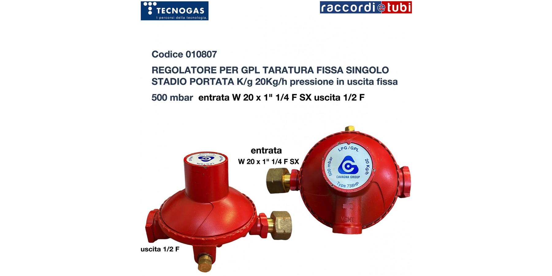 REGOLATORE PER GPL CON TARATURA FISSA 500 SINGOLO STADIO mbar kg/h 20 ù