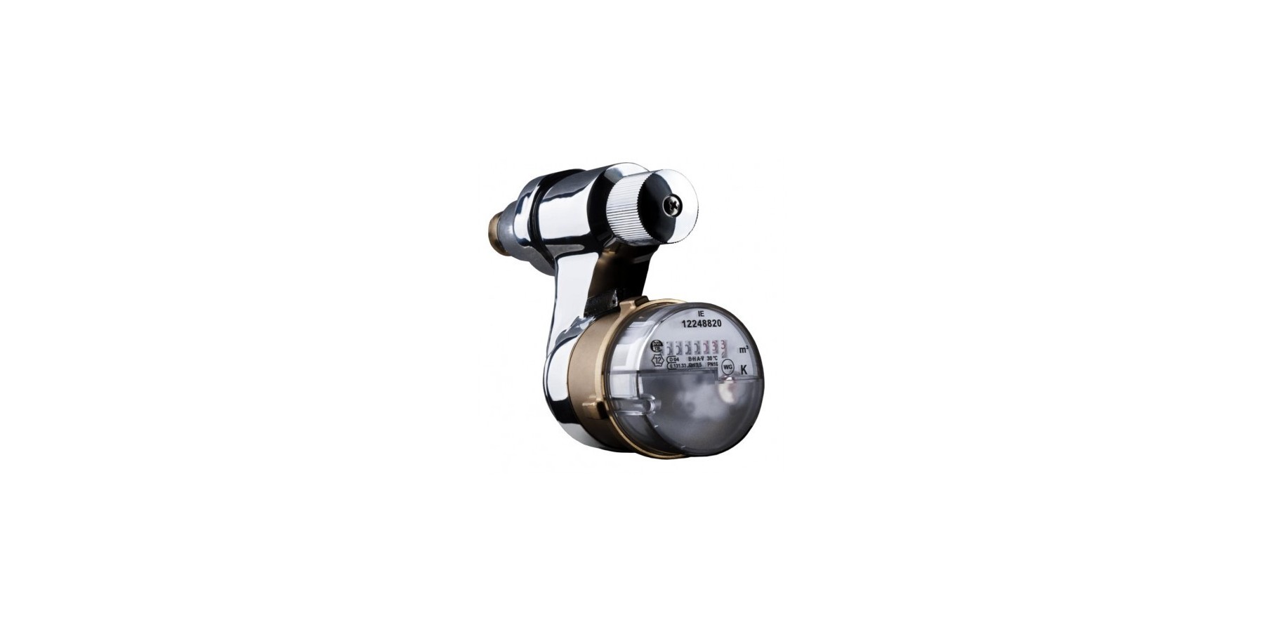 Contatore a getto unico, quadrante asciutto a trasmissione magnetica 8 rulli, avvitato sulla cassa con attacco EAS per la sostituzione del corpo misura senza lo smontaggio di tutto il gruppo rubinetto. Pressione nominale 10 bar. Temperatura massima di utilizzo 90°C. Predisposto per modulo radio 868 MHz (EN 13757) OMS. Completo di supporto in ottone cromato con rubinetto per la chiusura della mandata. A norma Europea EN 14154, direttiva 2004/22/CE (MID). Per una corretta installazione abbinare uno dei raccordi dedicati.