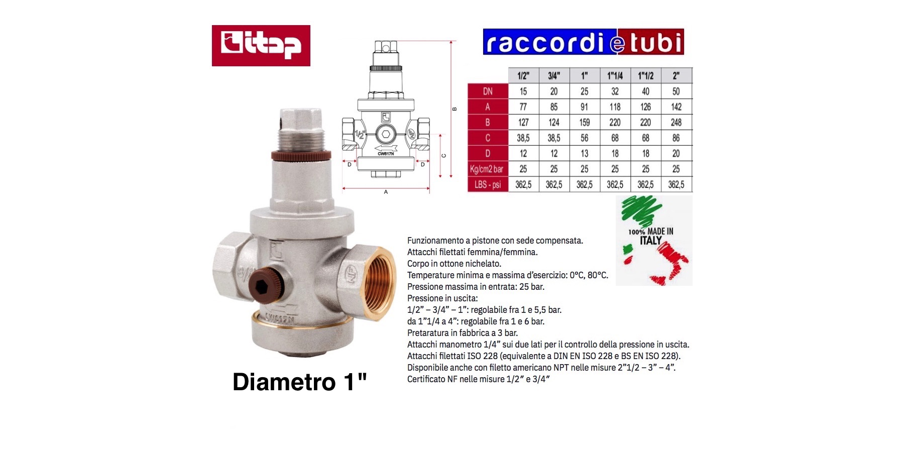 da 1”1/4 a 4”: regolabile fra 1 e 6 bar.