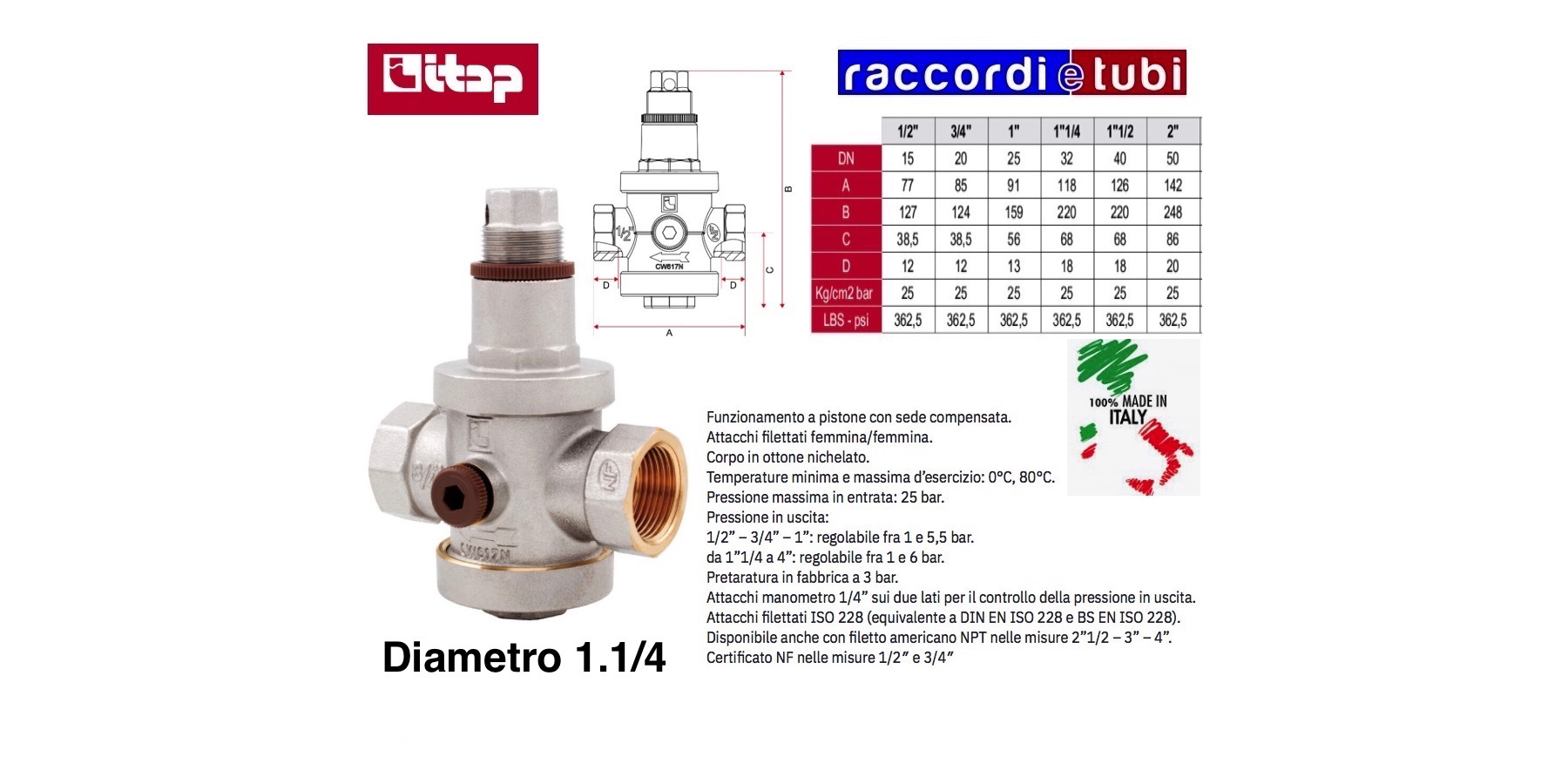 1/2” – 3/4” – 1”: regolabile fra 1 e 5,5 bar.