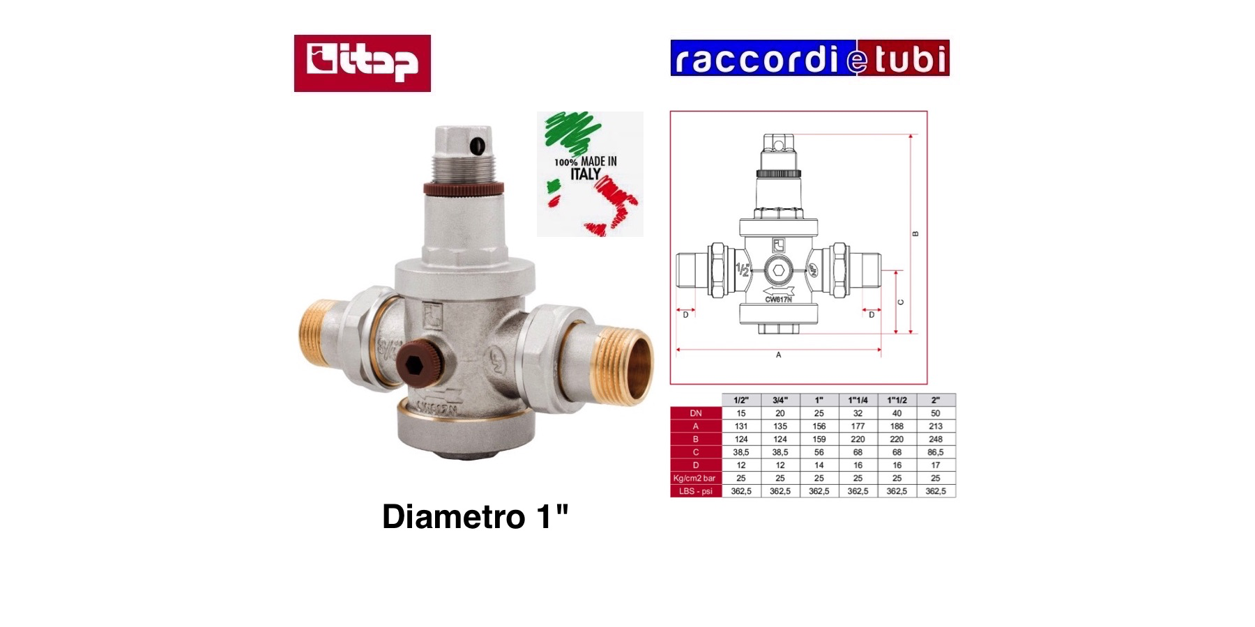 1/2” – 3/4” – 1”: regolabile fra 1 e 5,5 bar.