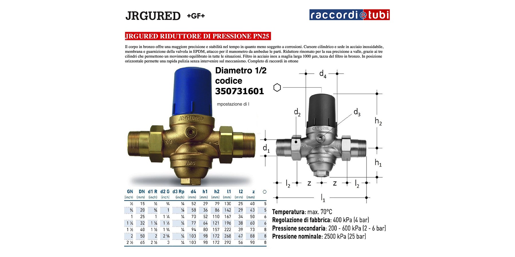 RIDUTTORE DI PRESSIONE JRGURED 1/2'' 4ba