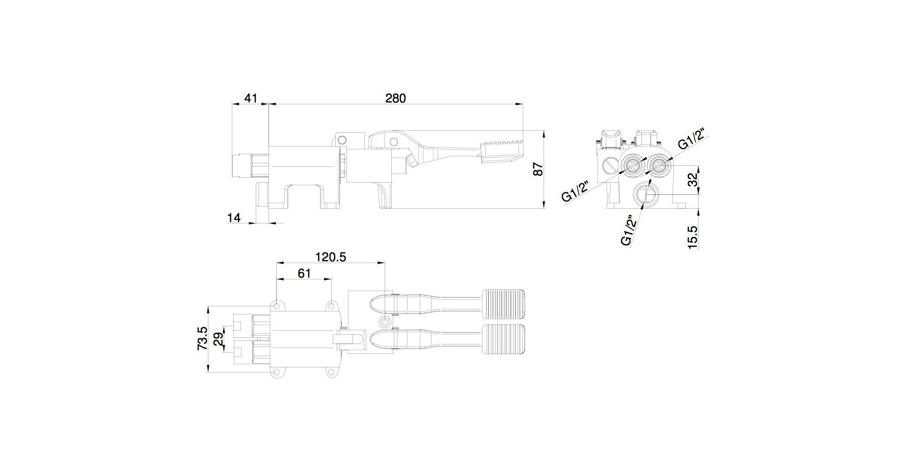Miscelatore progressivo a pavimento, con dispositivo di bloccaggio per erogazione continua dell’acqua.