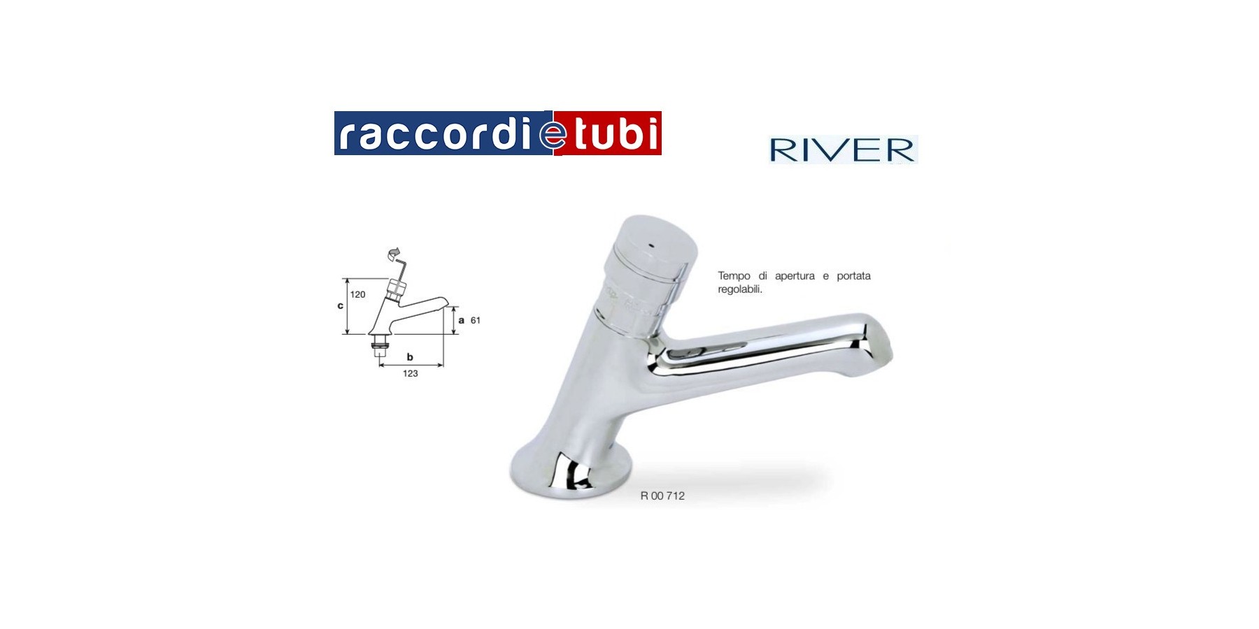 MINIMAGIC – rubinetto lavabo con portata regolabile no ad un consumo minimo di 4 litri/minuto, tempo di apertura di circa 20 secondi regolabile con la chiave in dotazione – cartuccia in ottone con spillo inox – fo ratura mm. 22, spessore max del piano mm. 25