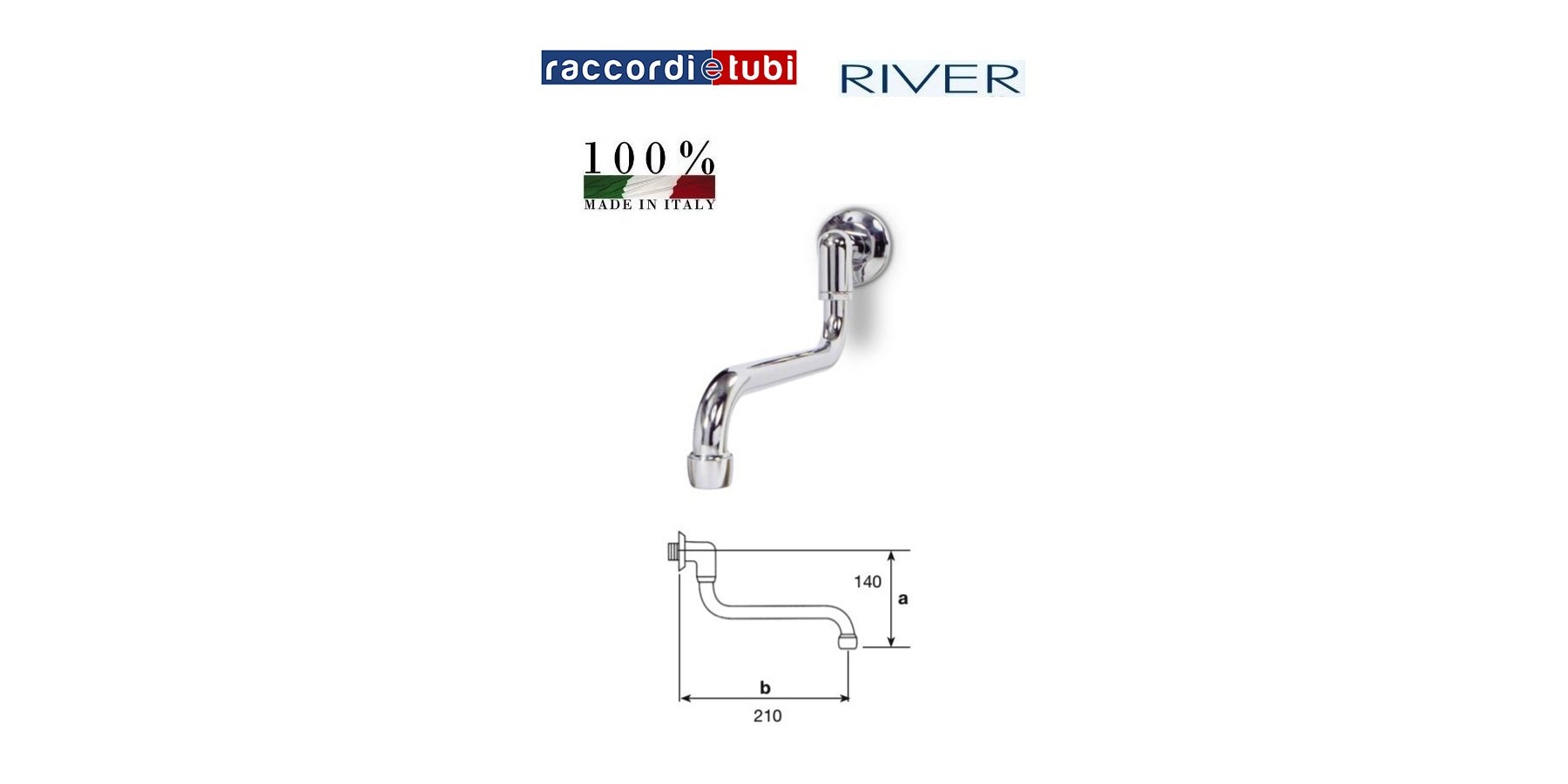 Bocca a parete orientabile bassa – ottone lucidato e cromato – lunghezza della bocca 180 mm. – rosetta Ø 58