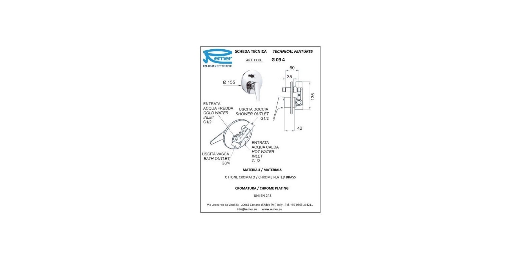 MISCELATORE MONOCOMANDO VASCA/DOCCIA DA INCASSO