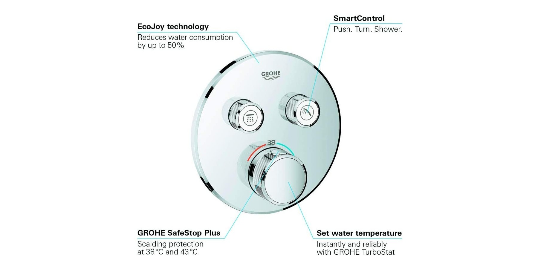- GROHE SmartControl pulsante ON-OFF, controllo getto da EcoJoy a Full Flow