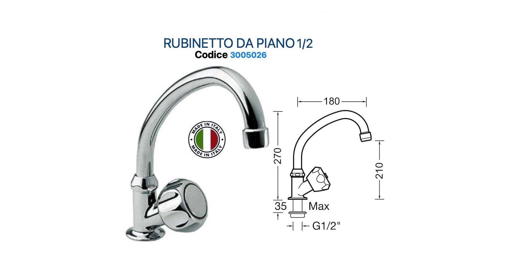 Rubinetteria con vitone 1/2 Tradizionale in Ottone pesante Cromata PRODOTTA INTERAMENTE IN ITALIA