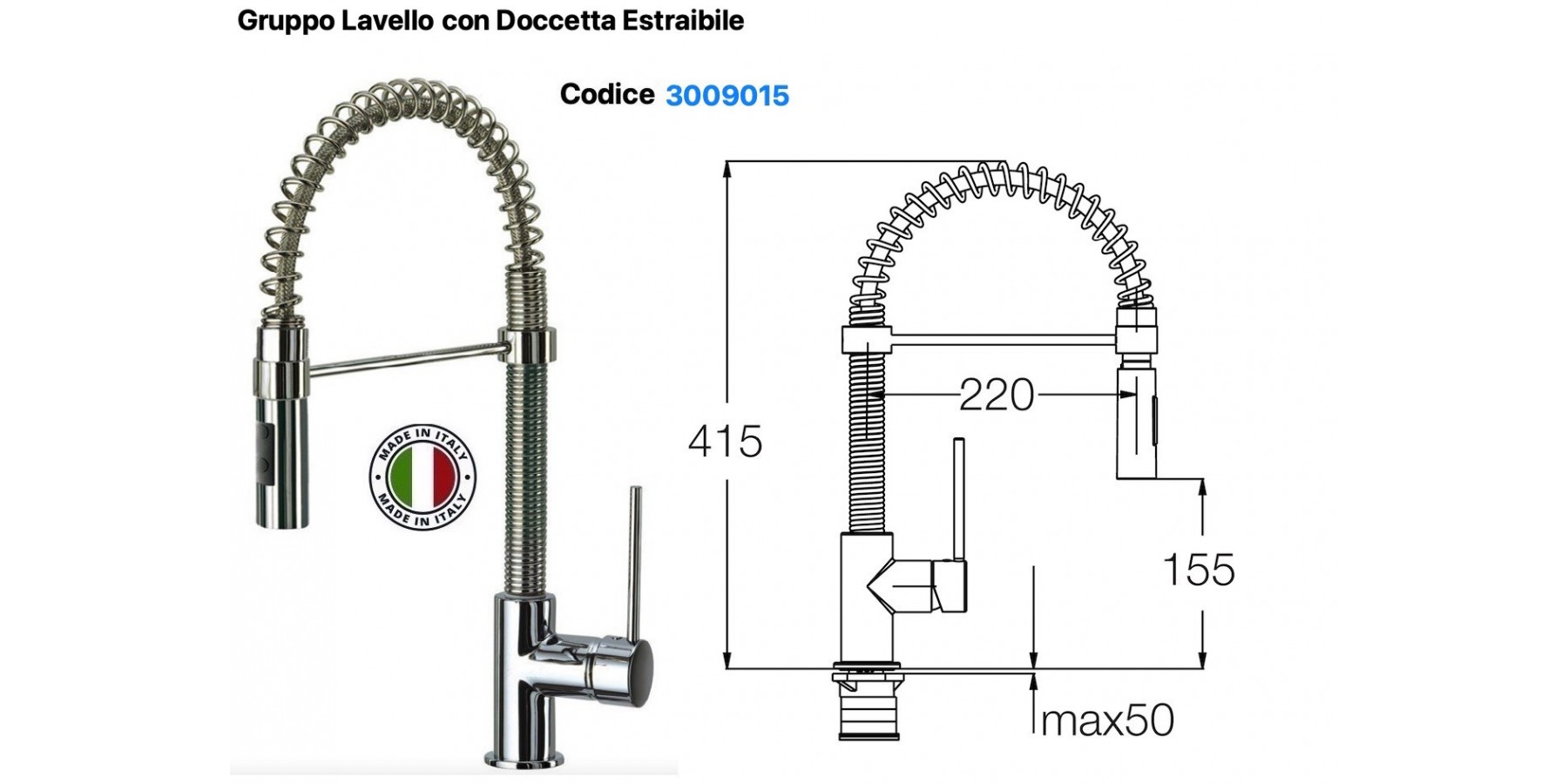 MISCELATORE LAVELLO DA PIANO CON DOCCETTA ESTRIABILE
