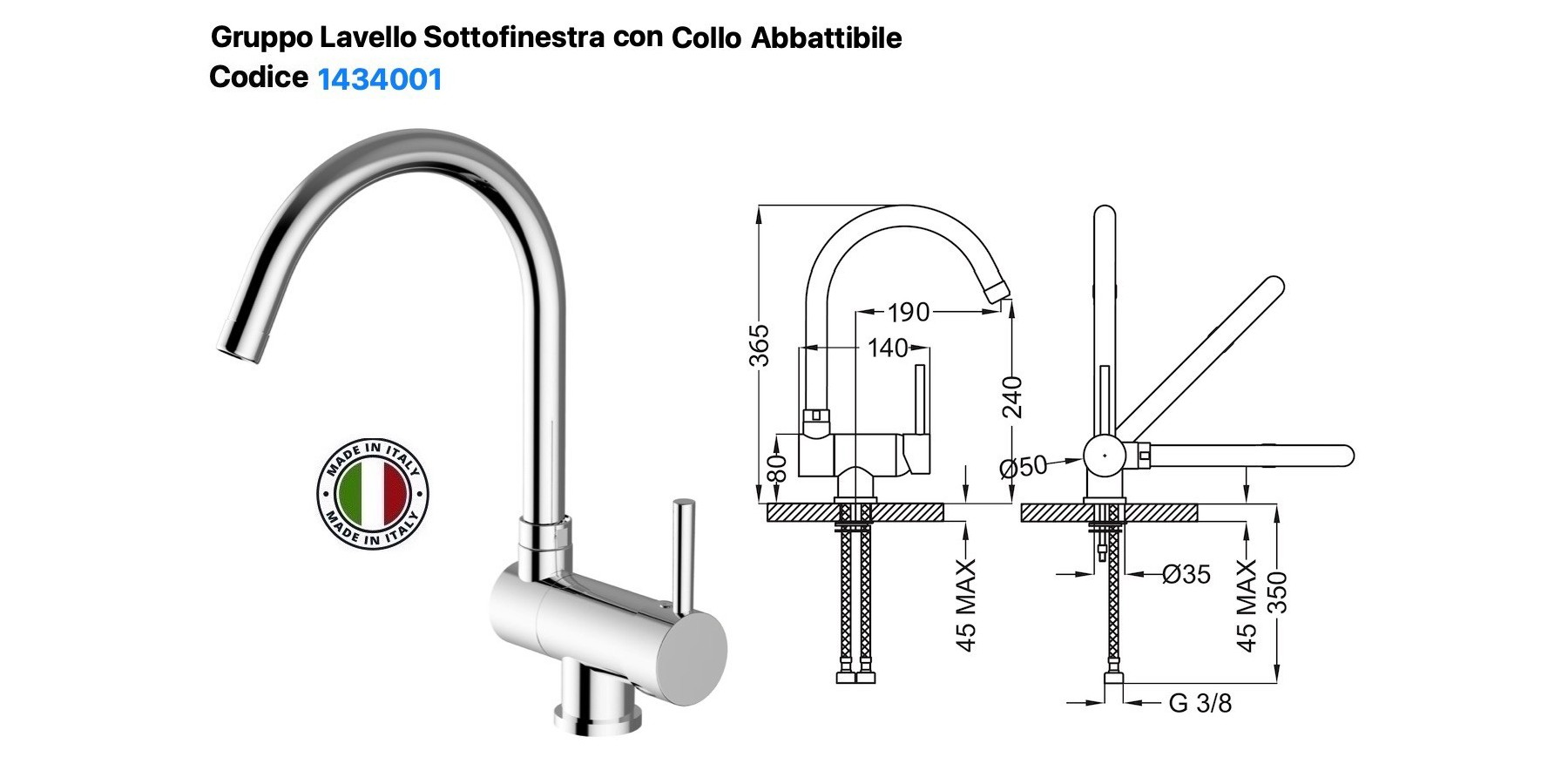 MISCELATORE LAVELLO DA PIANO IN OTTONE PESANTE CROMATO CON COLLO PIEGHEVOLE