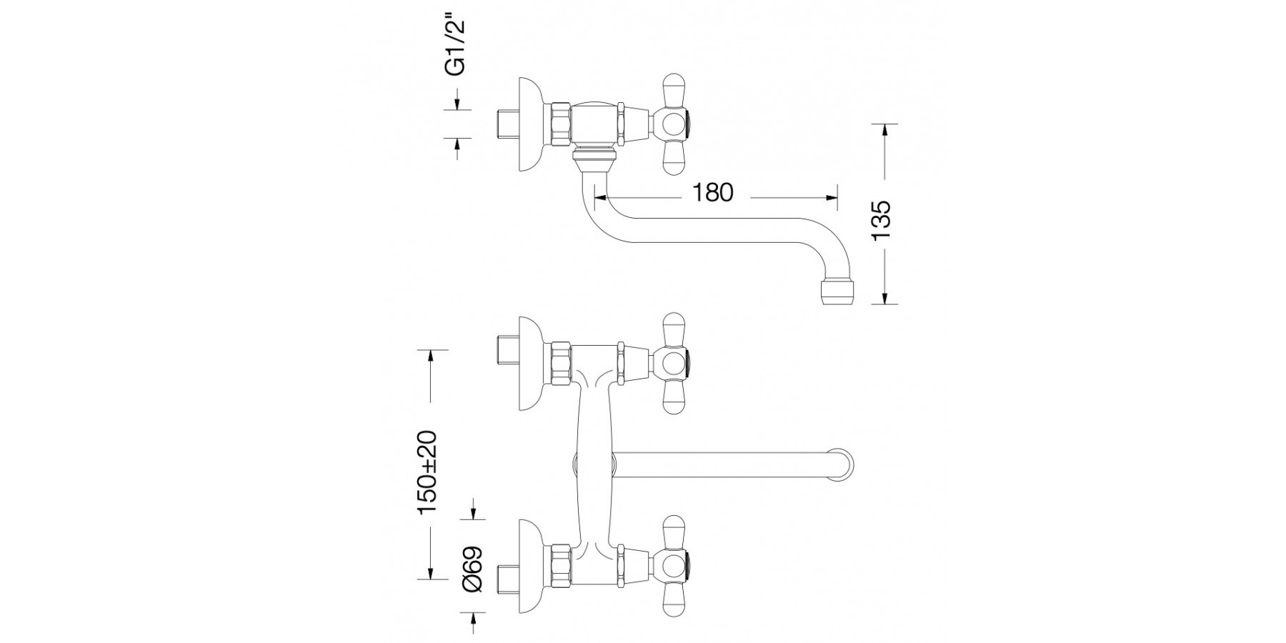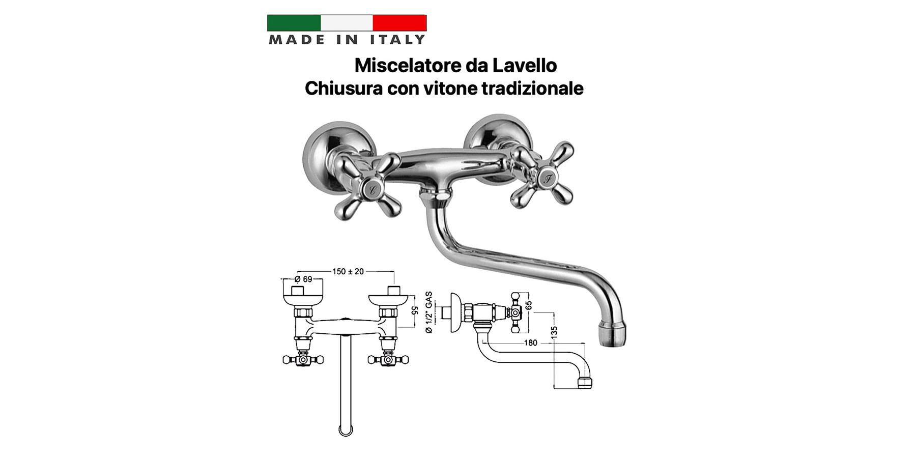 MISCELATORE LAVELLO TRADIZIONALE A PARETE CON COLLO A SNODO GIREVOLE inferiore
