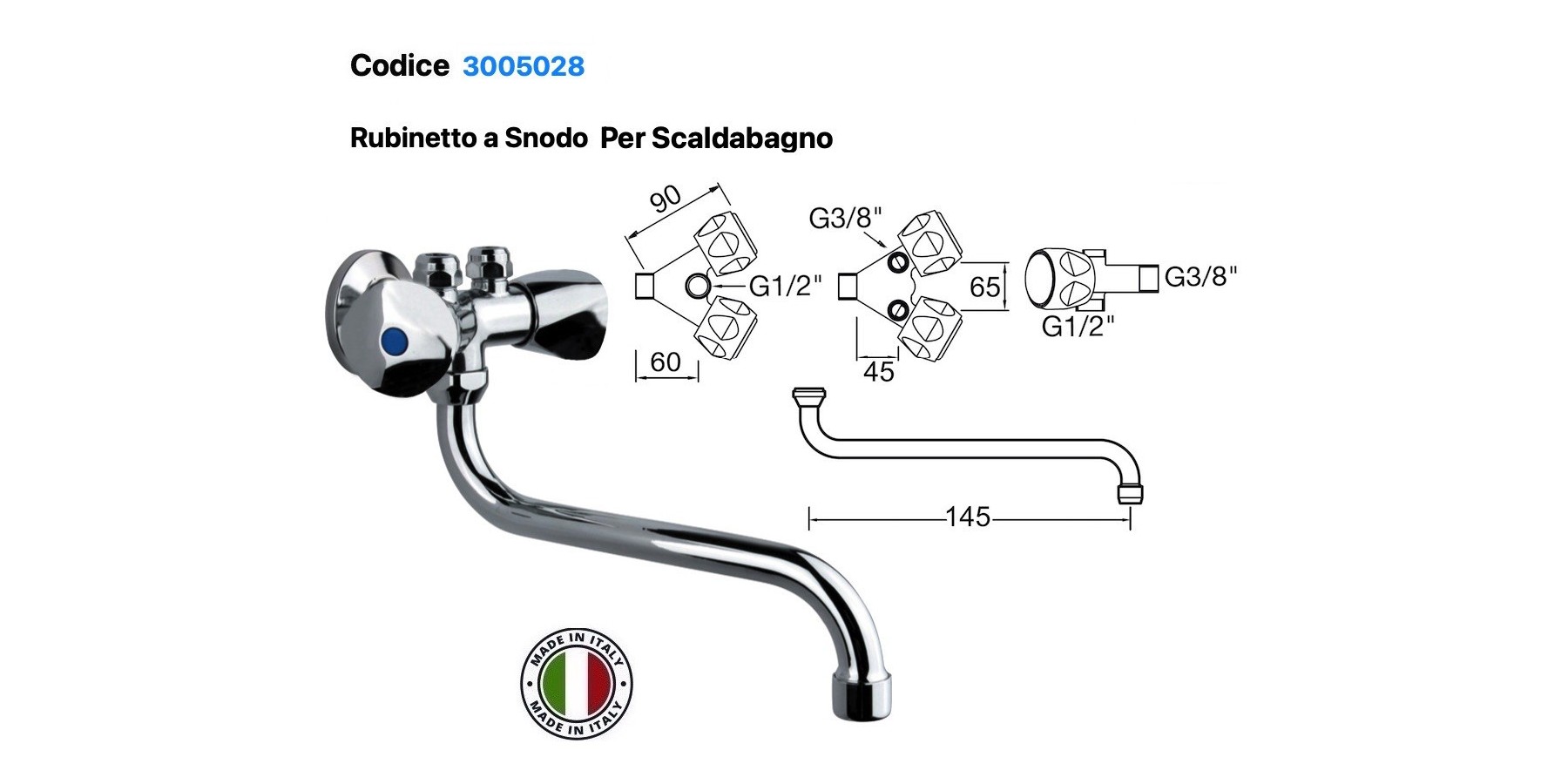 MISCELATORE TRADIZIONALE CON ATTACCO DA 1/2 MASCHIO IN OTTONE PESANTE CROMATO