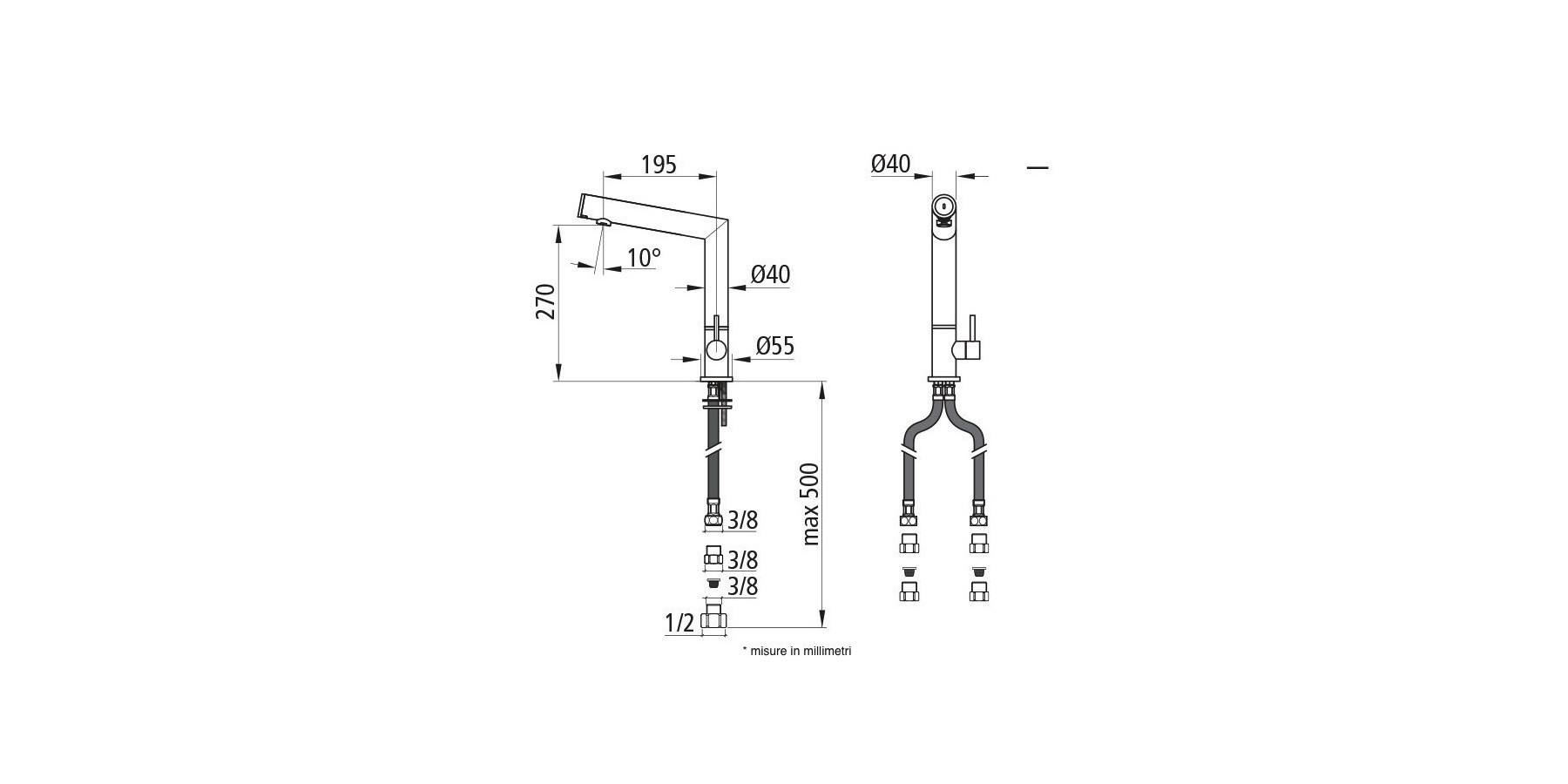 Canna e corpo del rubinetto in ottone cromato lucido o satinato