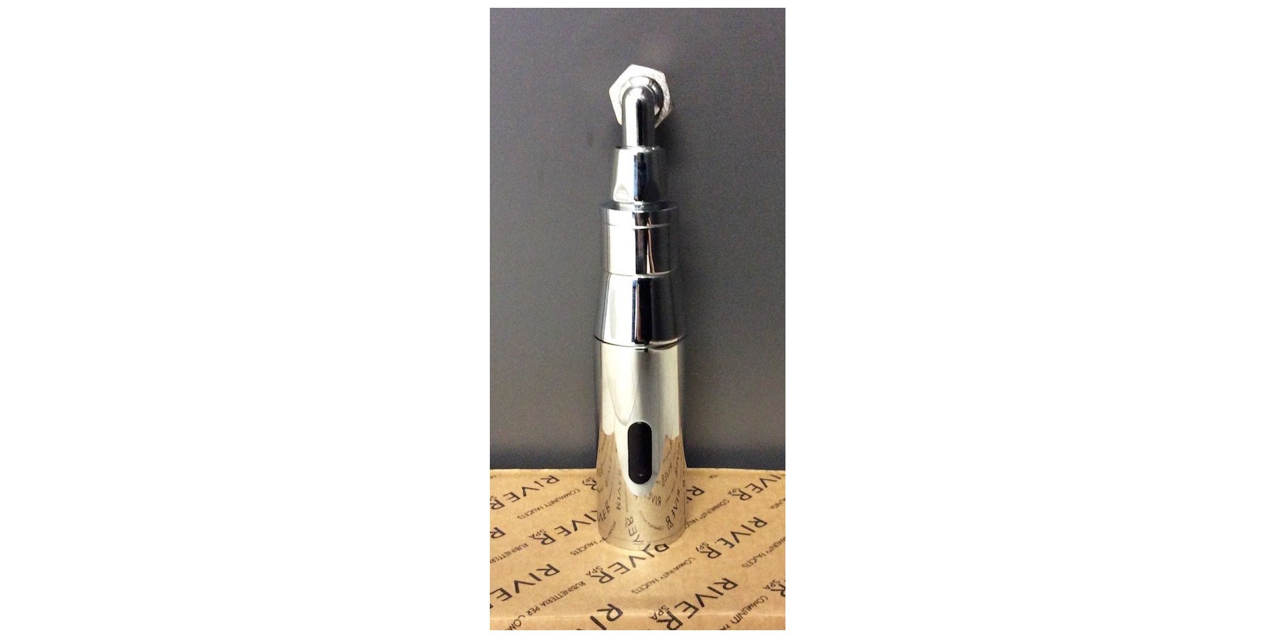 Rubinetto a fotocellula in ottone fuso lucidato e cromato esterno per doccia con regolatore automatico di portata di 9 litri/minuto – uscita con raccordo eccen trico da incasso e speciale curvetta rego labile per 15 mm. – possibilità di chiudere l’erogazione per l’eventuale manutenzione e con filtro inox facilmente estraibile – ali mentazione con normale batteria alcalina 9V per circa 100.000 utilizzazioni (2 anni) – coperchio inferiore per la sostituzione fa cile della batteria.