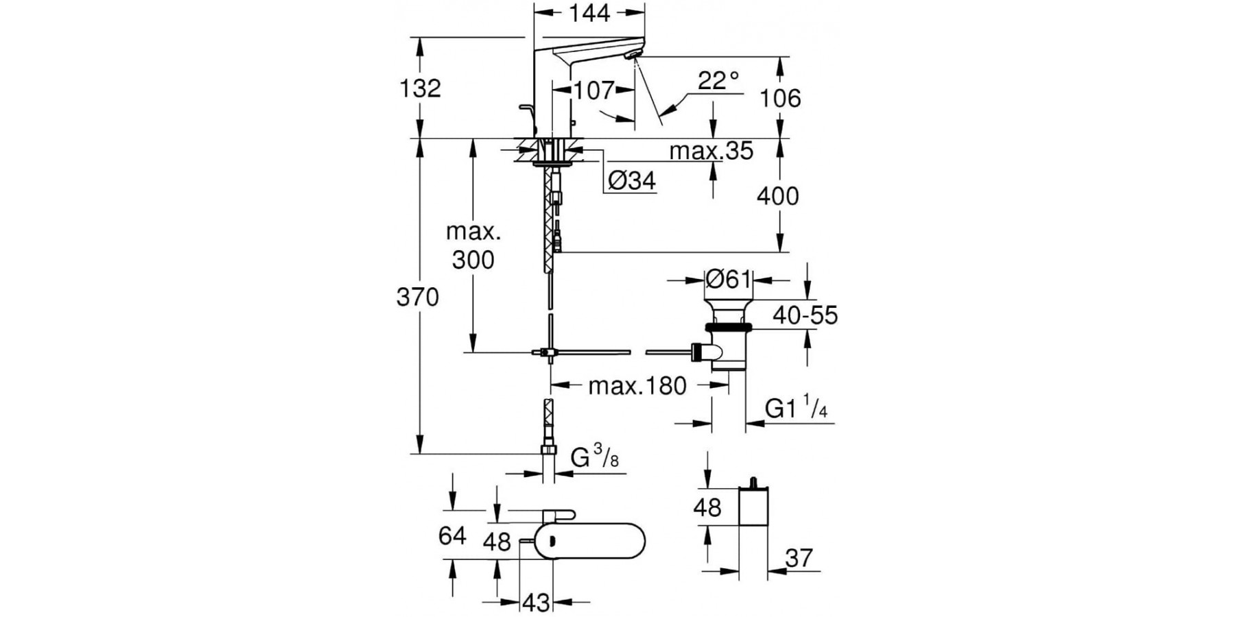 Con sensore a infrarossi per comunicazione bidirezionale, batteria al litio da 6 V, tipo CR-P2, durata della batteria circa 7 anni (con 150 azionamenti al giorno), superficie grohe StarLight, EcoJoy 5,7 l/min, corpo del miscelatore in composito polimerico, tubi flessibili di collegamento, valvola magnetica integrata, sistema di montaggio rapido, indicatore del livello della batteria, 7 programmi preimpostati, modalità di pulizia automatica e disinfezione, ulteriori funzioni e funzioni. Telecomando 36 407CE Gruppo rubinetteria I secondo DIN 4109.