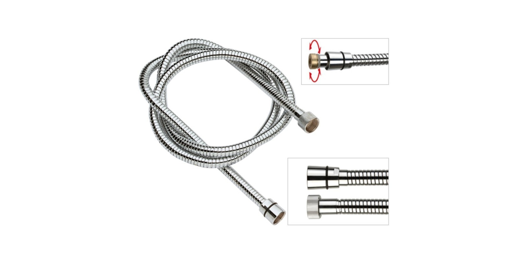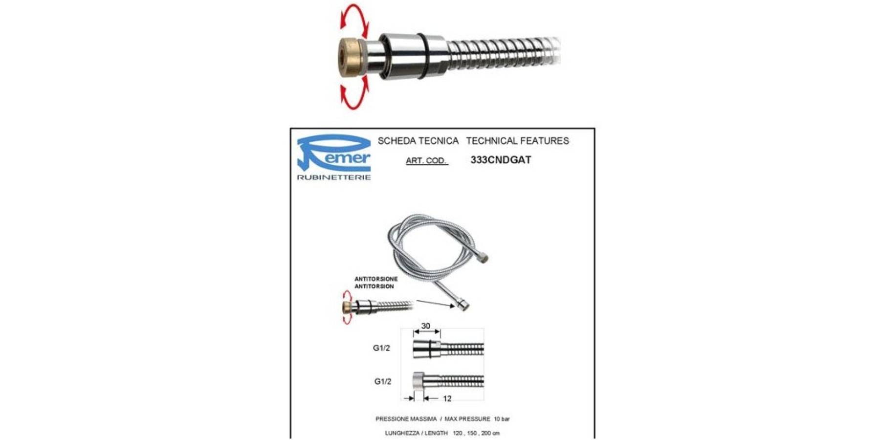 FLESSIBILE PER DOCCIA ESTENSIBILE MADE IN ITALY a doppia graffatura in ottone, con sistema girevole ed anti-torsione, Ø 15, con attacco conico 1/2