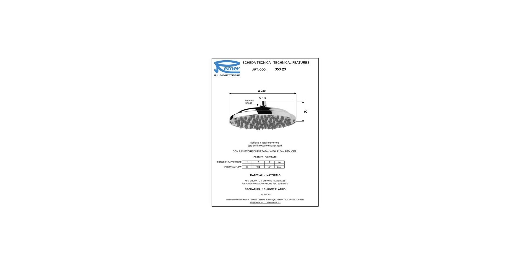 SOFFIONE REMER A PIOGGIA DIA.23