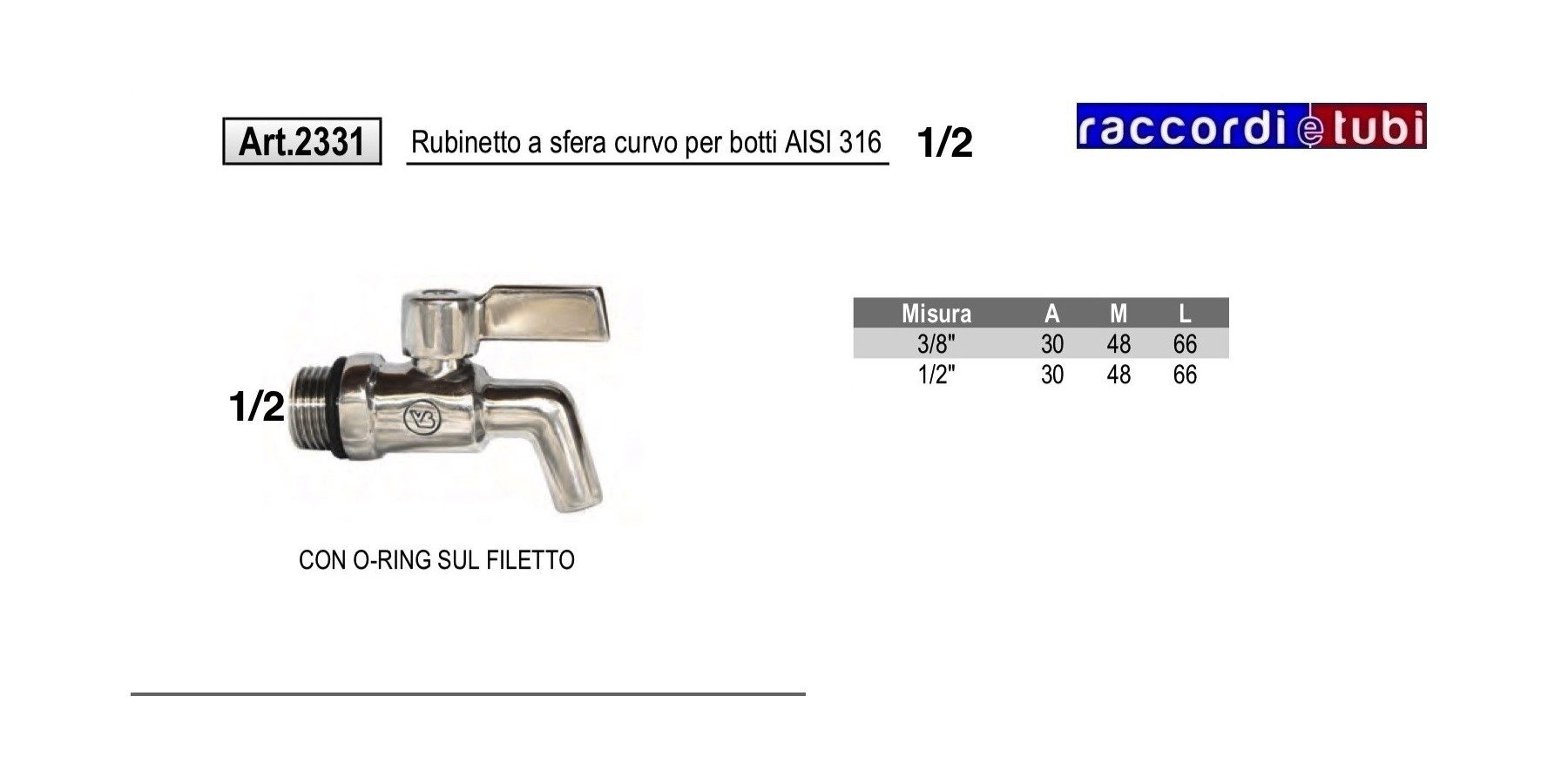RUBINETTO PORTAGOMMA IN ACCIAIO INOX 316 1/2 MASCHIO