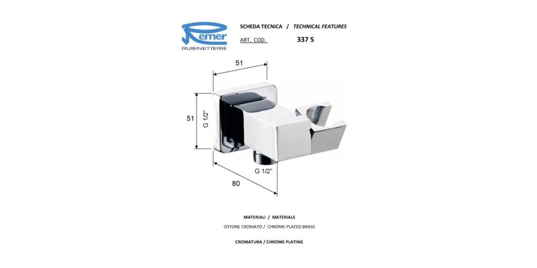 PRESA ACQUA E SUPPORTO SNODATO LUSSO QUADRATOin ottone cromato per incasso, per flessibile con attacco conico