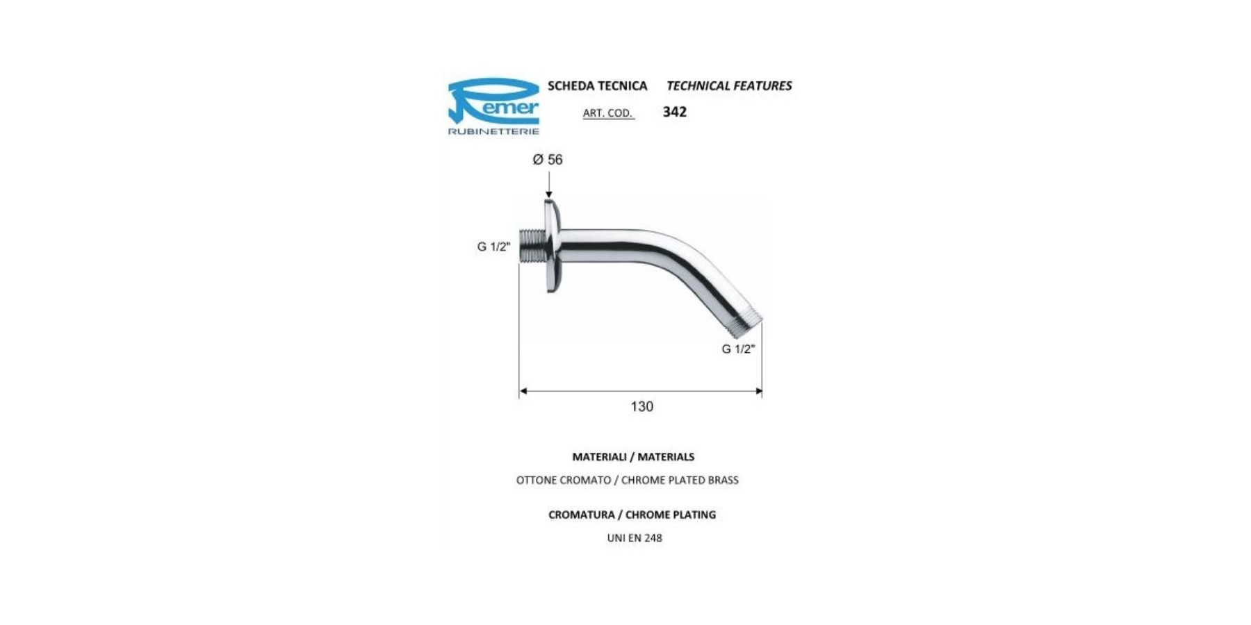 BRACCIO DOCCIA REMER 1/2 LUNGO 45°
