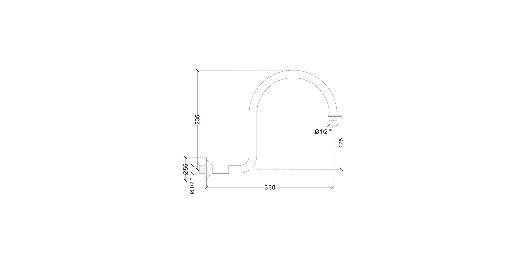 Misure:Sporgenza mm.360 Diametro braccio mm.18 Diametro attacco 1"1/2 Diametro attacco 2"1/2 Diametro rosetta mm.55