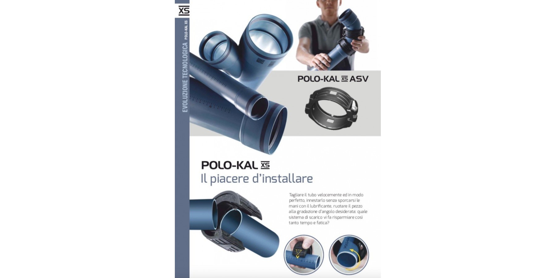 Sistema estremamente maneggevole e rapido da installare grazie alla giunzione ad innesto senza necessità di lubrificazione, con guarnizione elastomerica inserita direttamente nel bicchiere (funTEC technologie). Ciò impedisce qualsiasi possibilità di perdita della guarnizione nelle fasi di stoccaggio, trasporto o posa del materiale. Con il sistema POLO-KAL XS sino a 10 metri di colonna non è richiesto il consueto spazio nel bicchiere per la dilatazione. Il sistema in polipropilene POLO-KAL XS è compatibile alla connessione con altri materiali plastici in PP/PE-HD/PVC nei diametri standard.