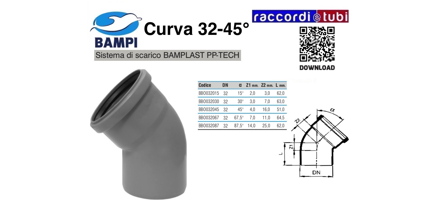 CURVA A INNESTO PP-H/MC DIAMETRO 32-45°