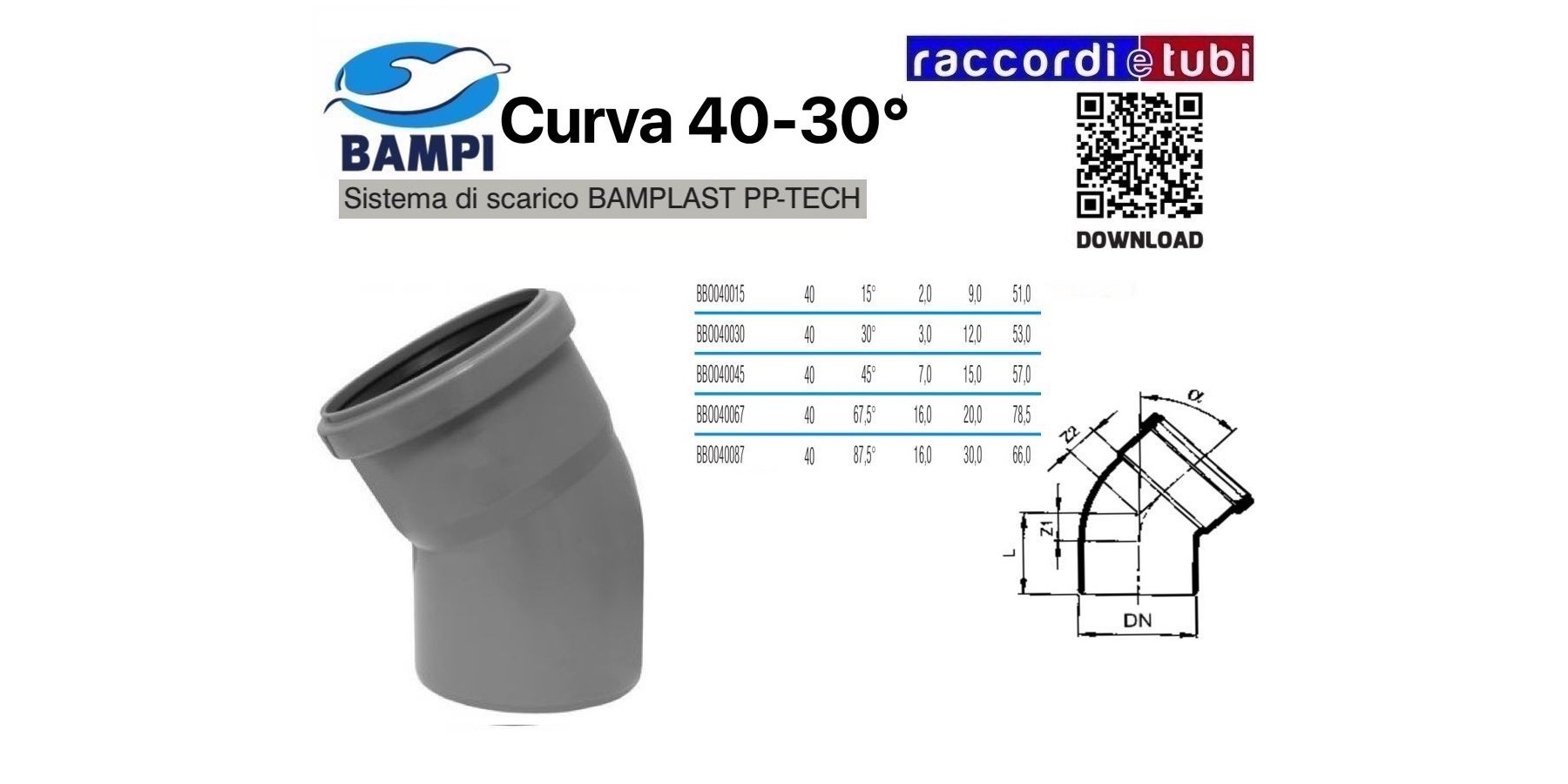 CURVA A INNESTO PP-H/MC DIAMETRO 40-30°