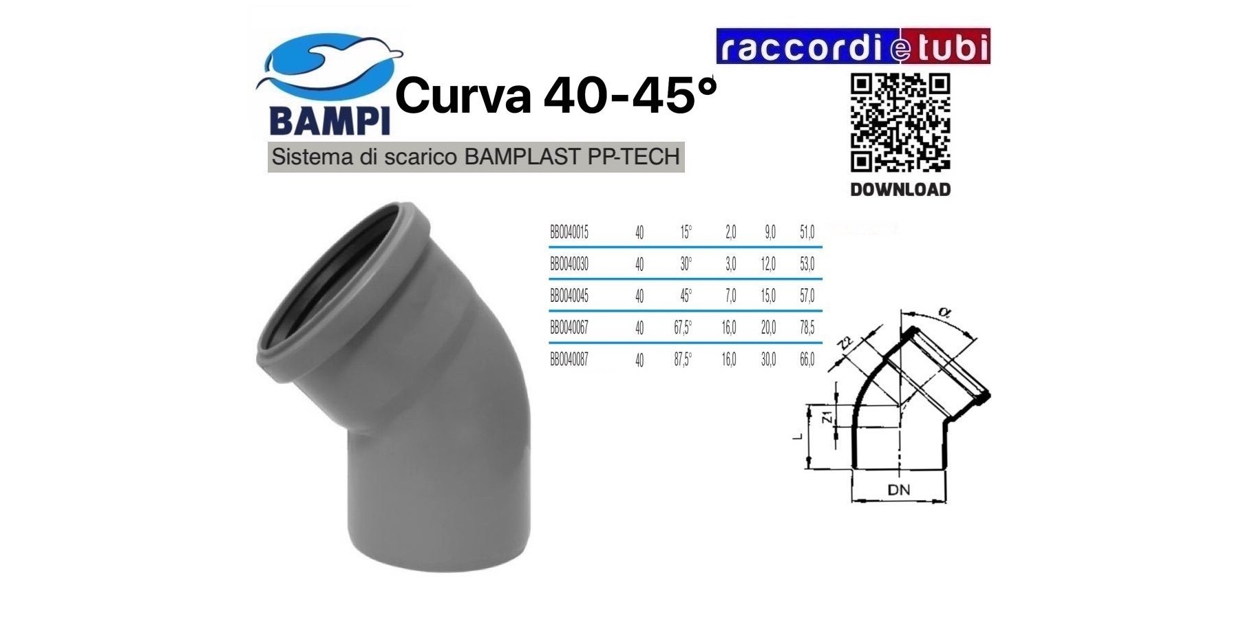 CURVA A INNESTO PP-H/MC DIAMETRO 40-45°
