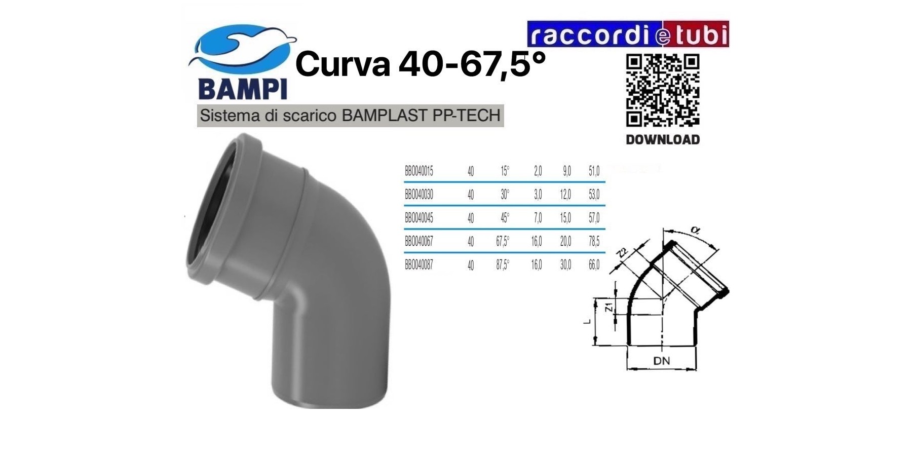 CURVA A INNESTO PP-H/MC DIAMETRO 40-67,5°