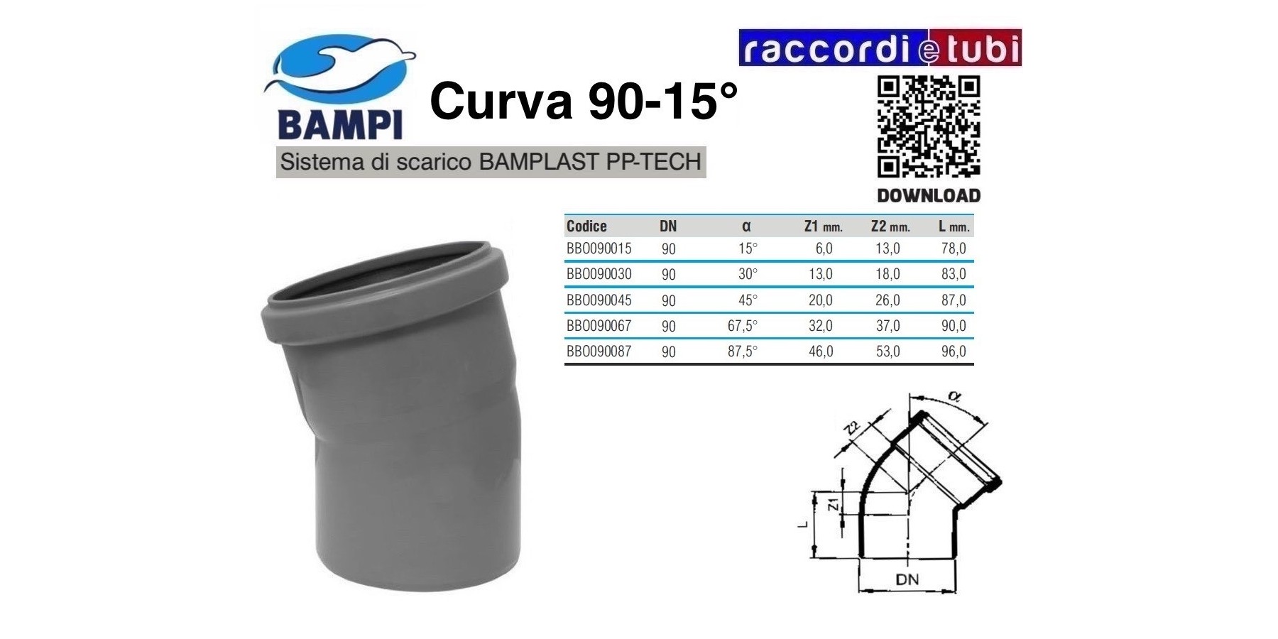 CURVA A INNESTO PP-H/MC DIAMETRO 90-15°