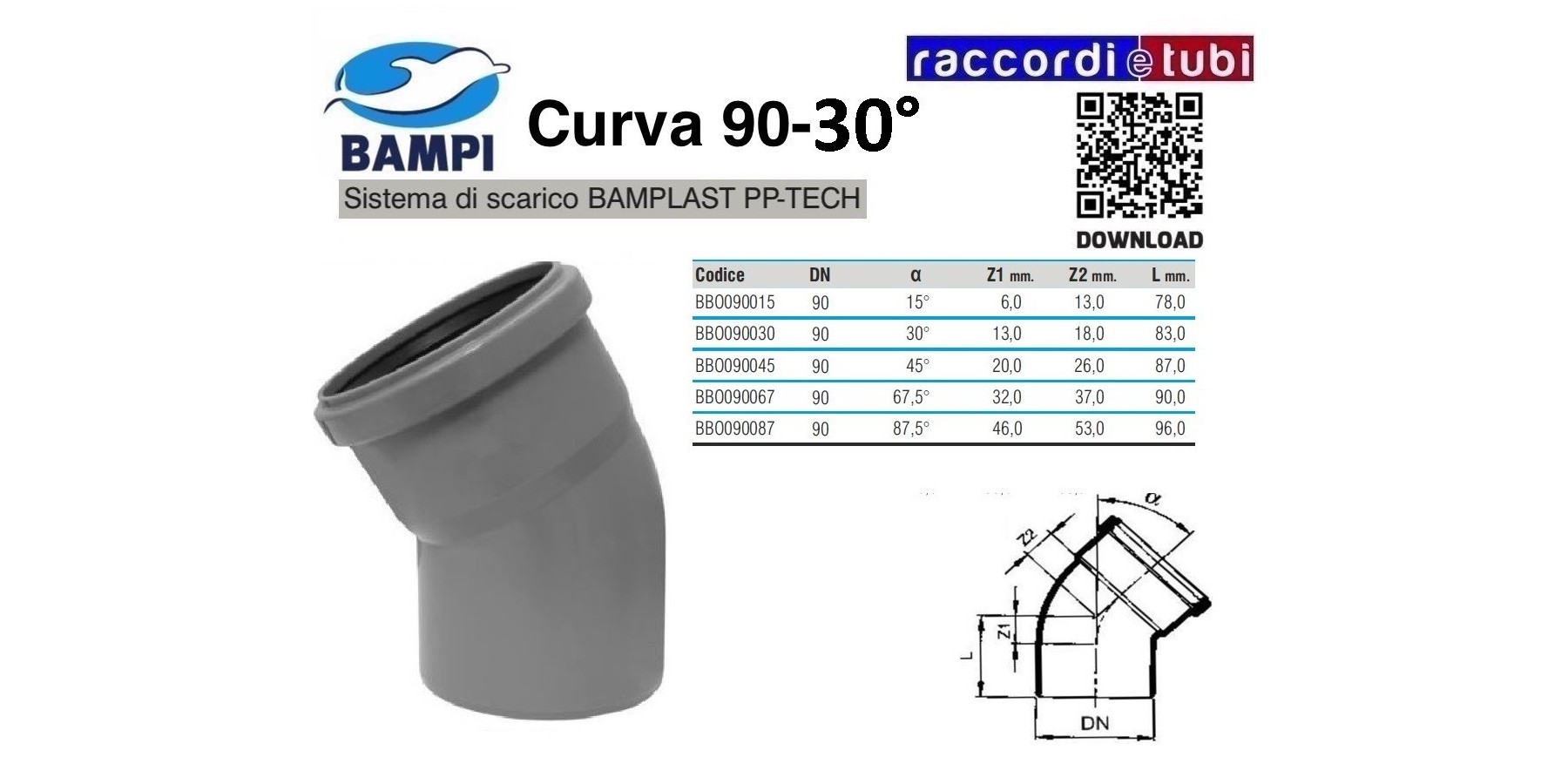 CURVA A INNESTO PP-H/MC DIAMETRO 90-30°
