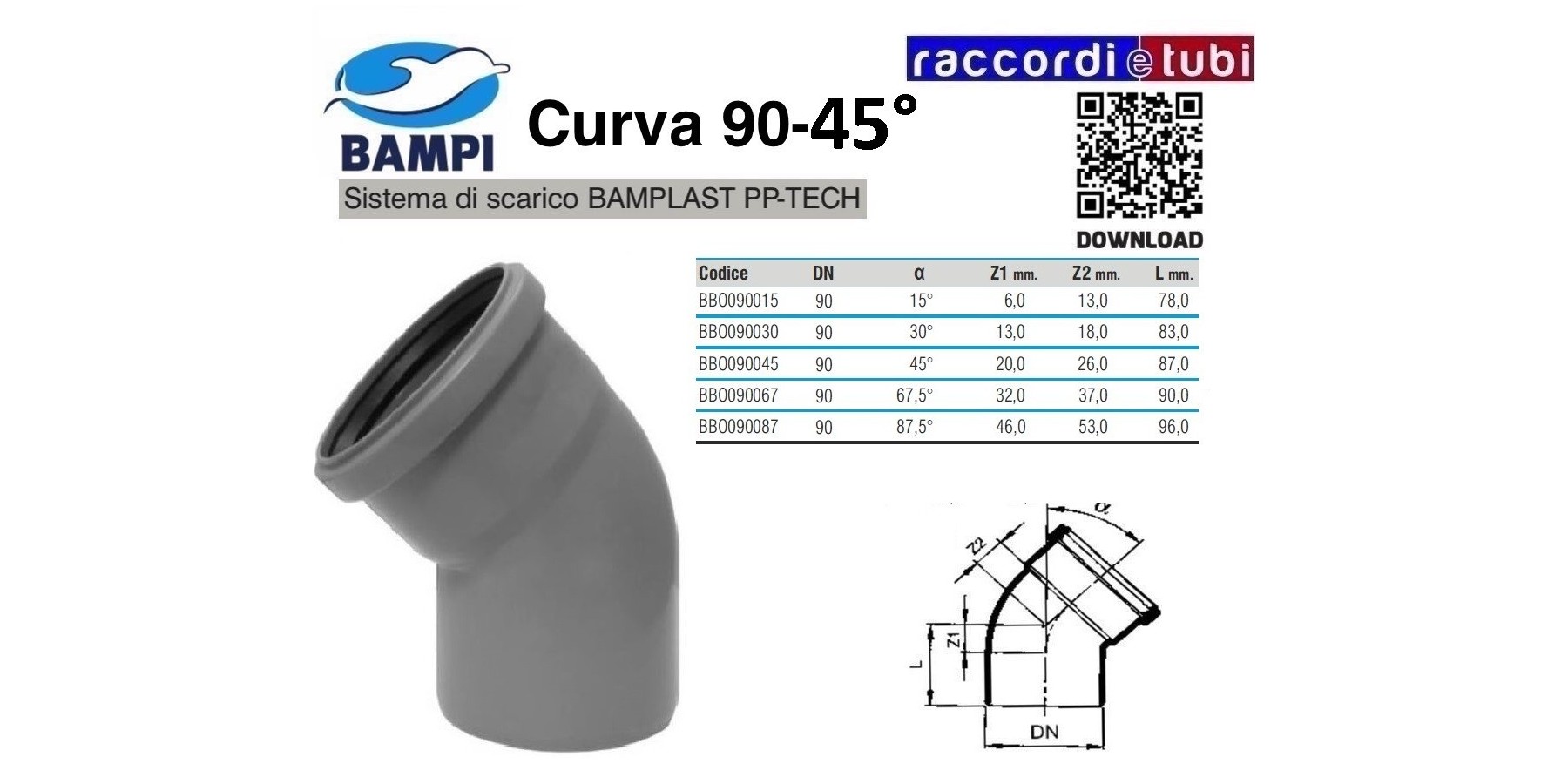 CURVA A INNESTO PP-H/MC DIAMETRO 90-45°