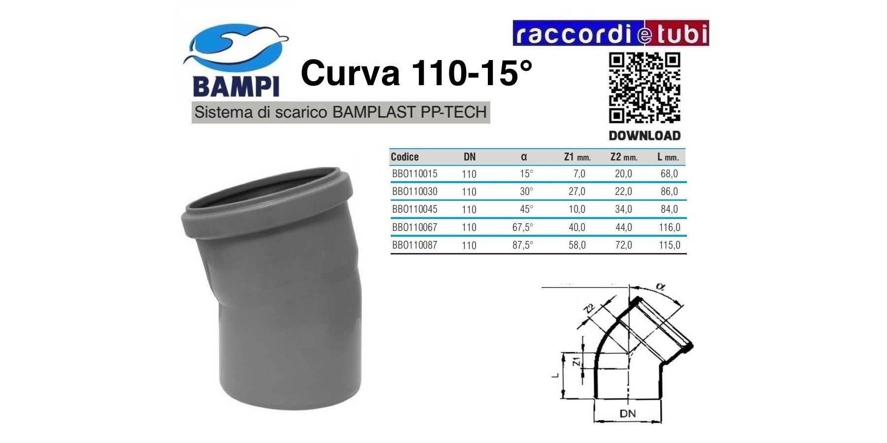 CURVA A INNESTO PP-H/MC DIAMETRO 110-15°