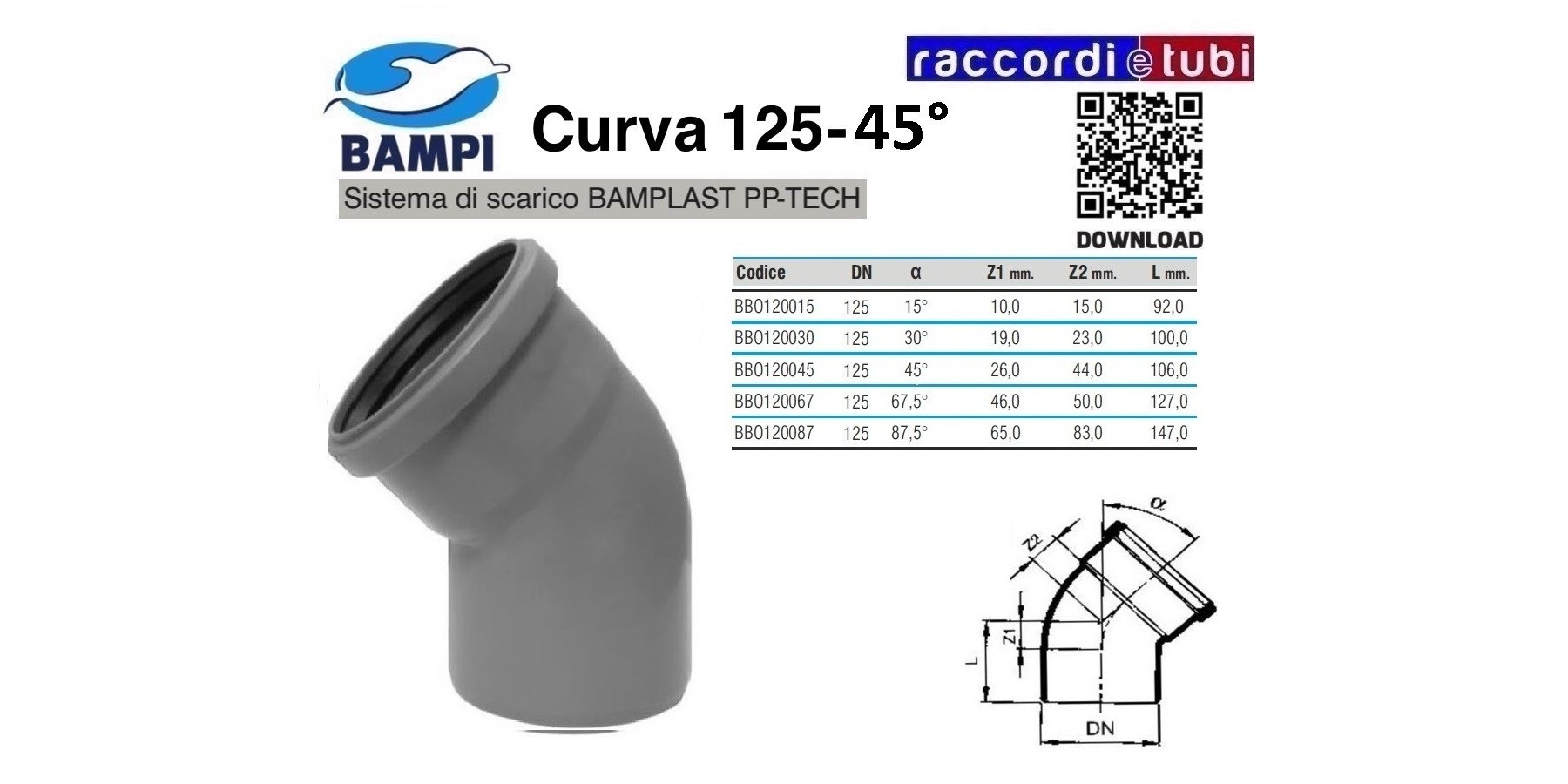 CURVA A INNESTO PP-H/MC DIAMETRO 125-45°