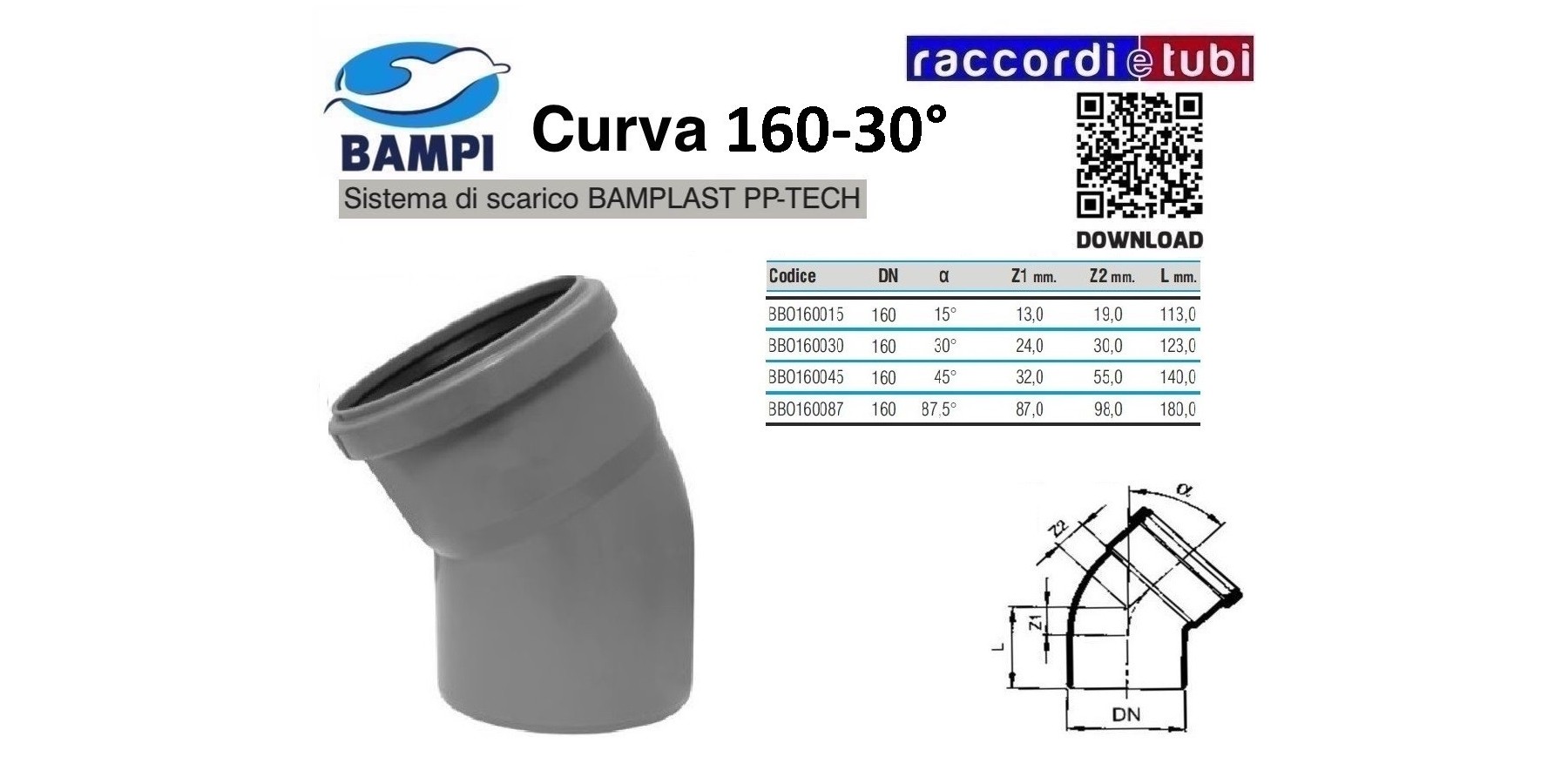 CURVA A INNESTO PP-H/MC DIAMETRO 160-30°