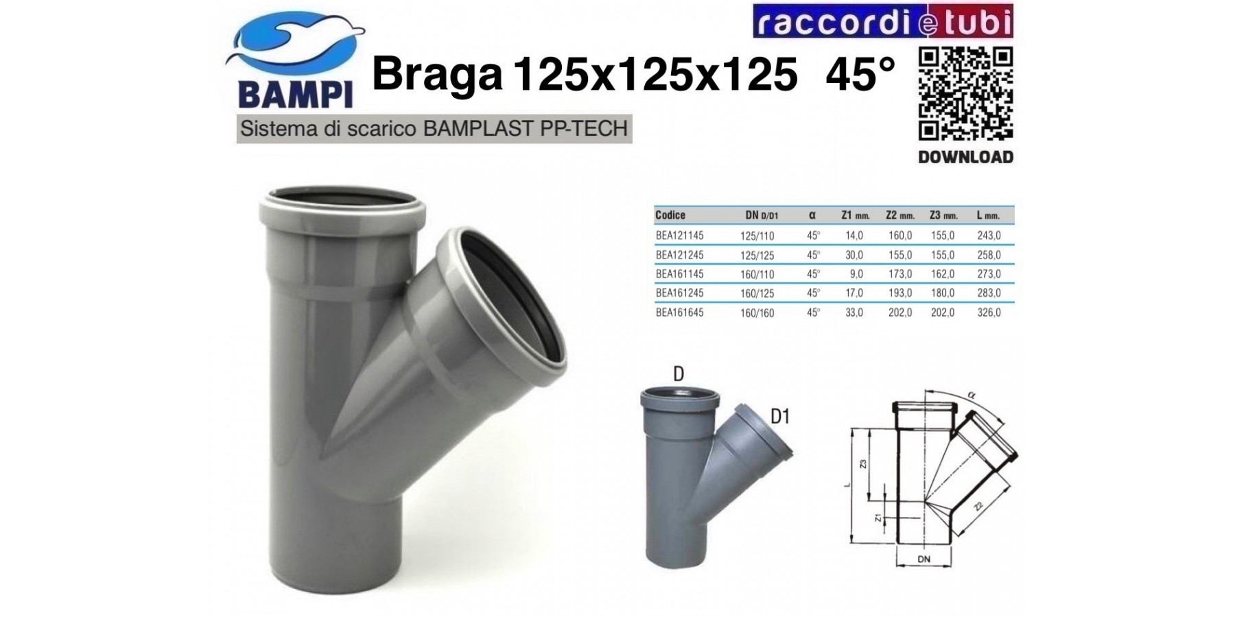BRAGA A INNESTO PP-H/MC DIAMETRO 125X125X125 45°