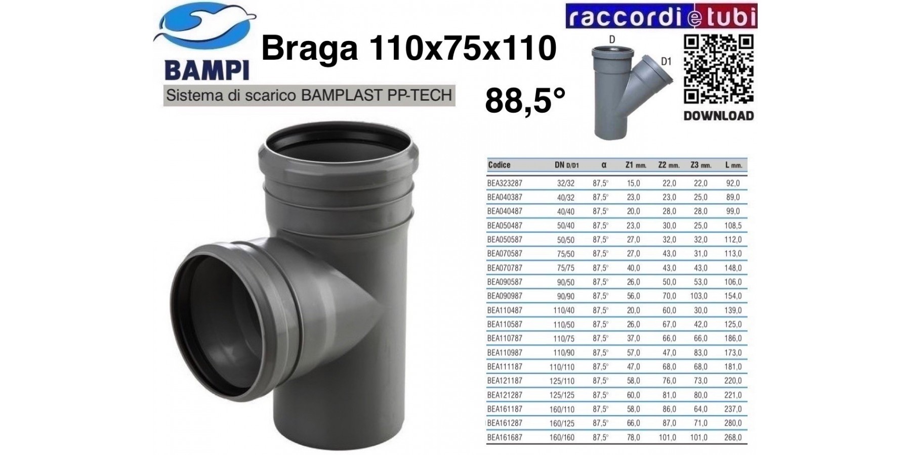 BRAGA A INNESTO PP-H/MC DIAMETRO 110X75X110 88,5°