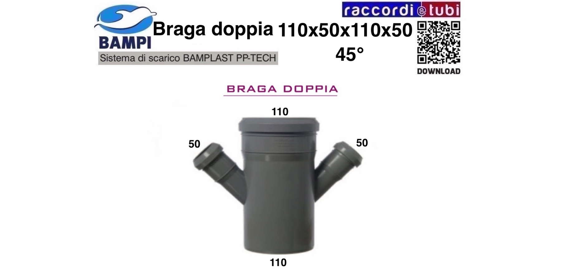 BRAGA A INNESTO PP-H/MC DIAM.110X50X110X50 45°