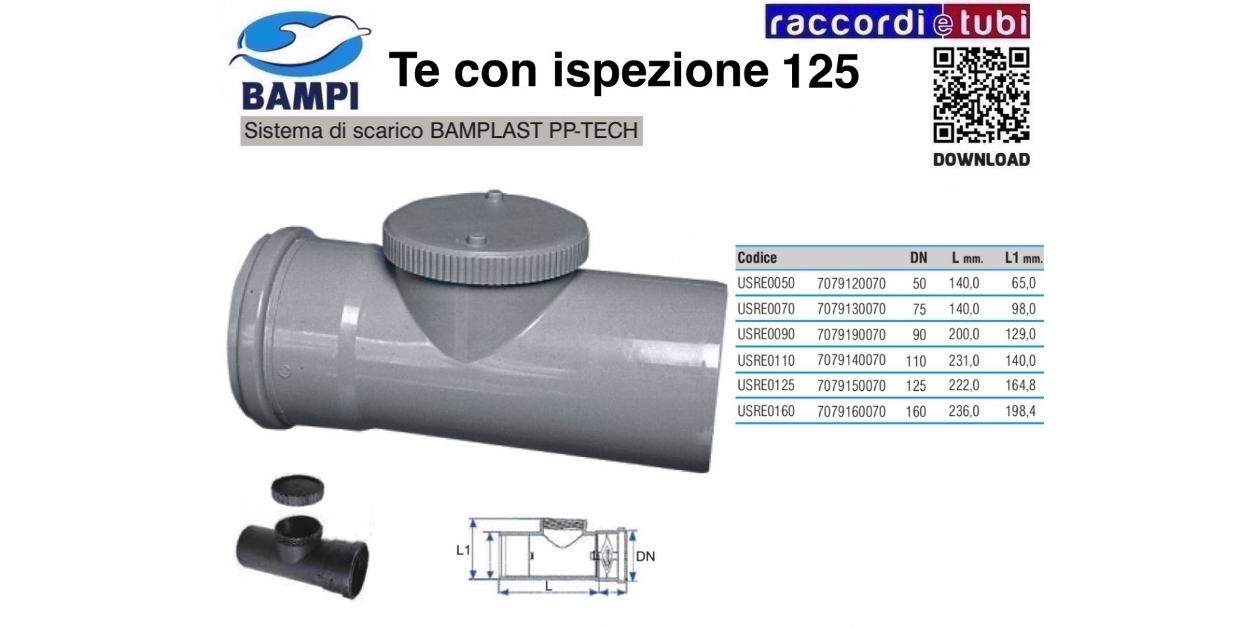 TE CON ISPEZIONE A INNESTO PP-H/MC DIAM.125