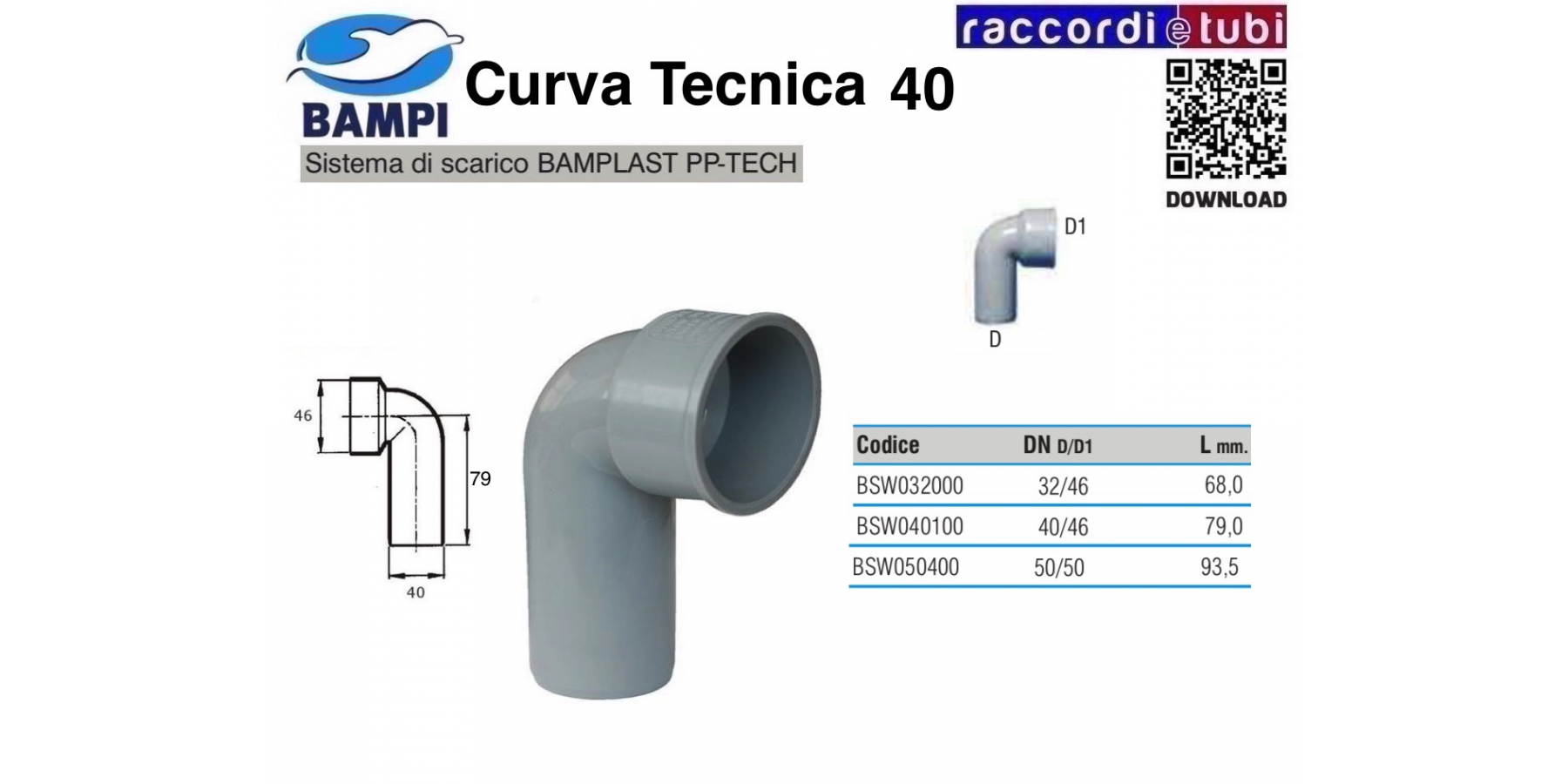 CURVA TECNICA A INNESTO PP-H/MC 40X46