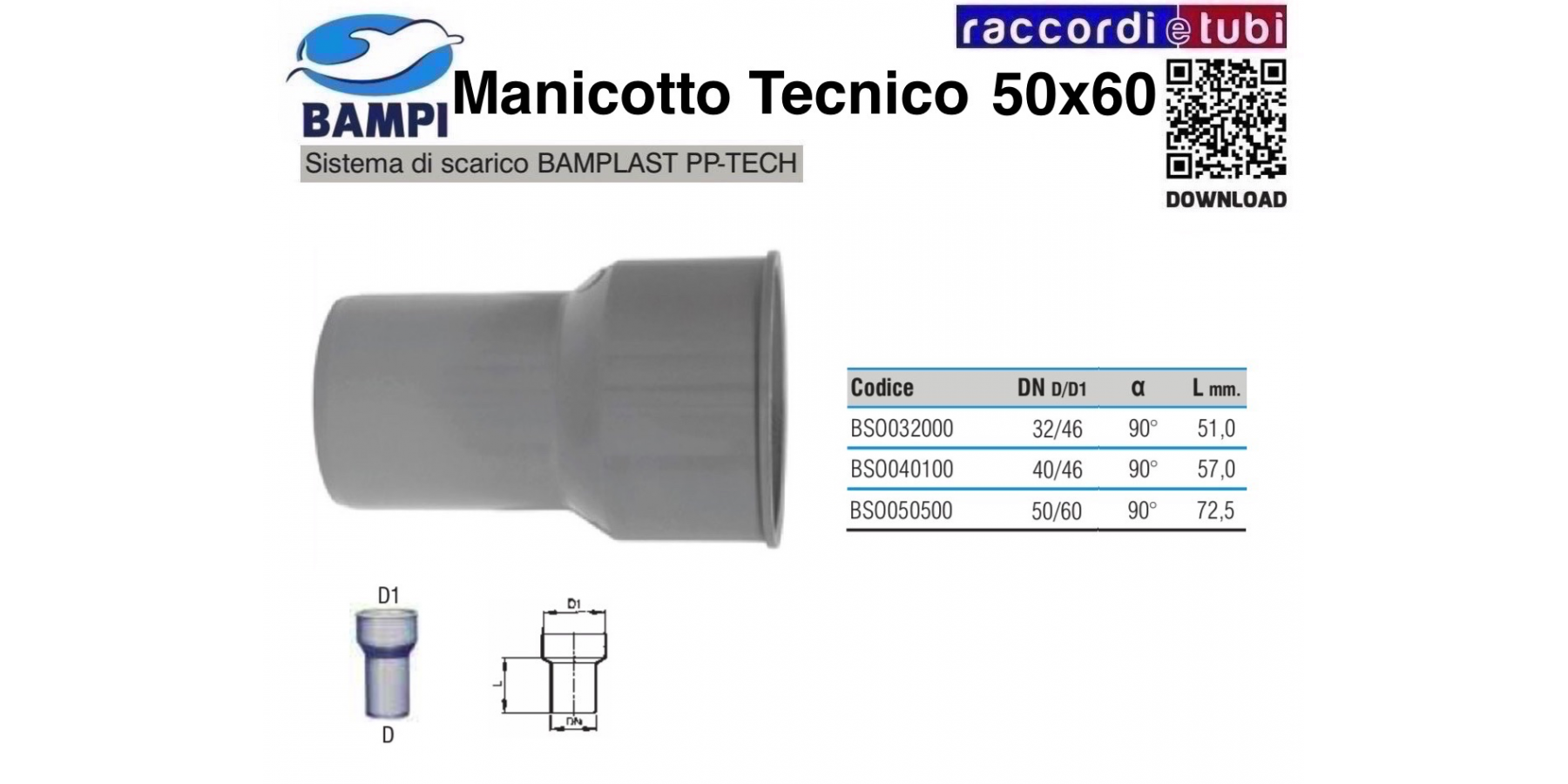 MANICOTTO TECNICO A INNESTO PP-H/MC 50X60
