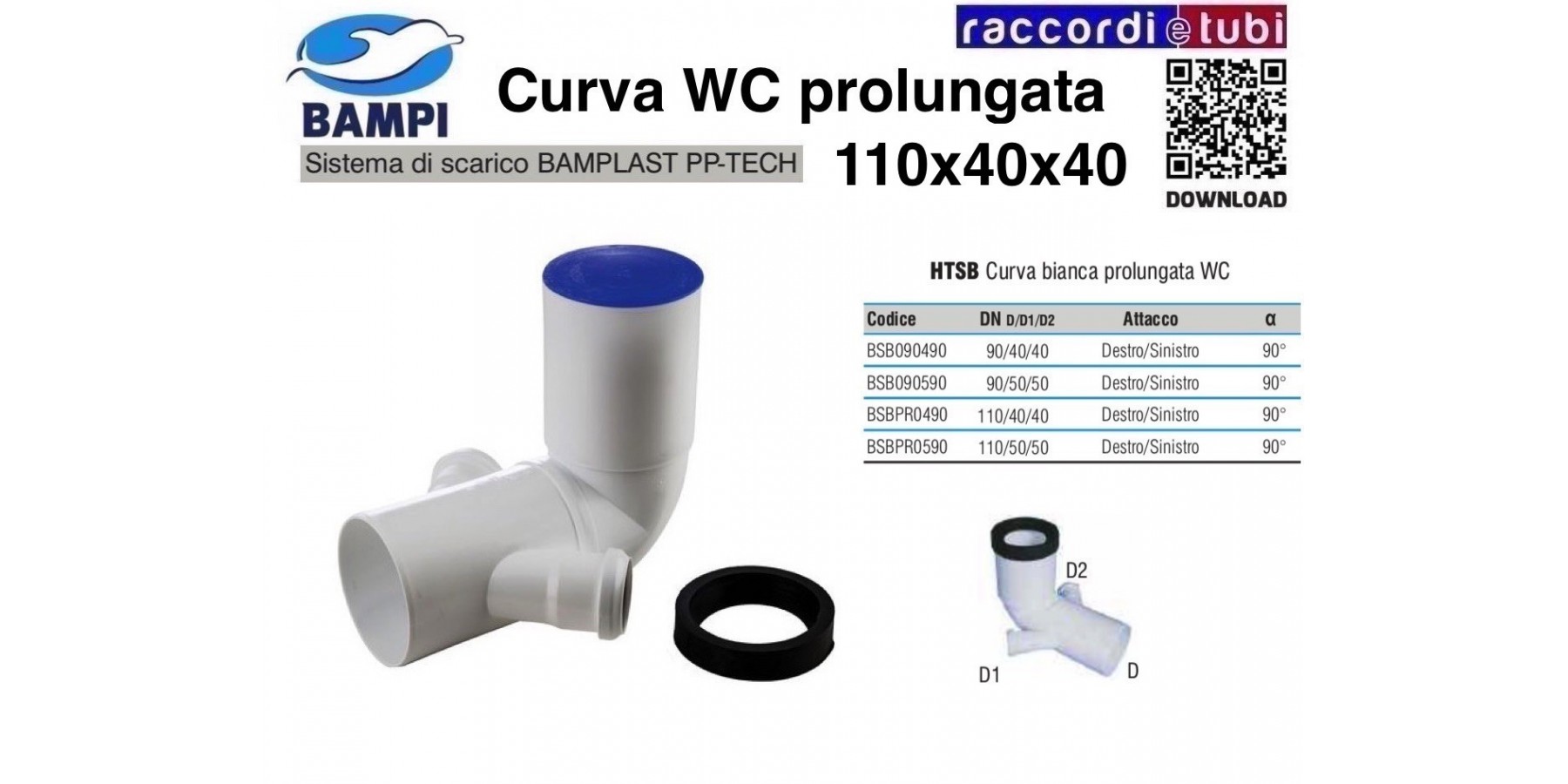 CURVA WC PP-H/MC DIAMETRO 110X40X40 DESTRA-SINISTRA