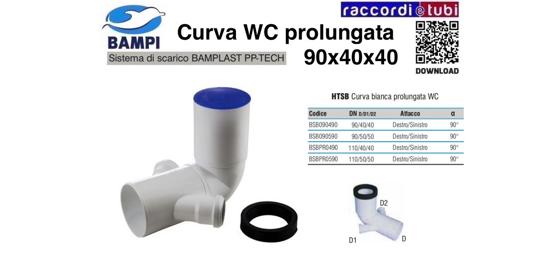 CURVA WC PP-H/MC DIAMETRO 90X40X40 DESTRA-SINISTRA