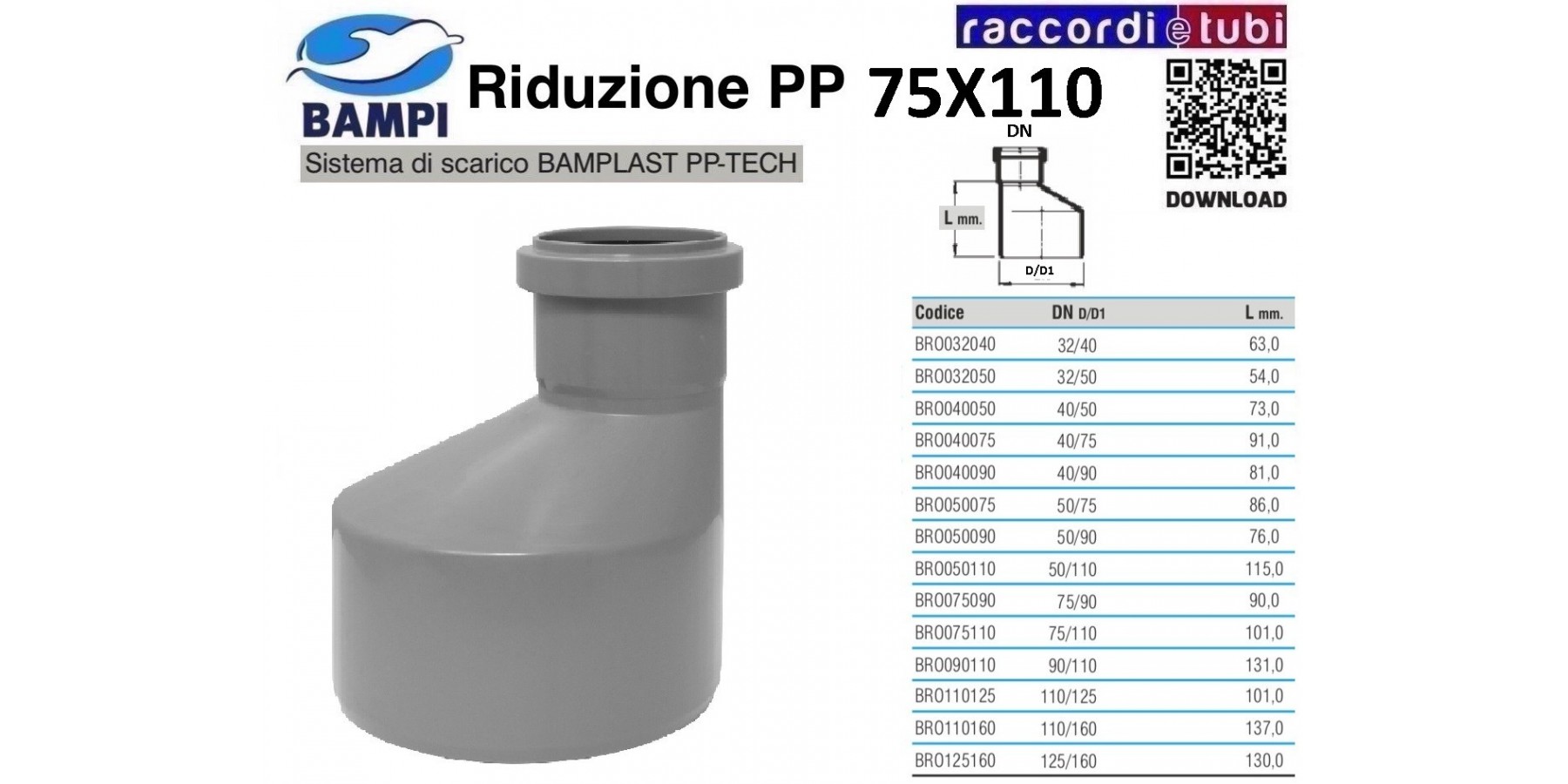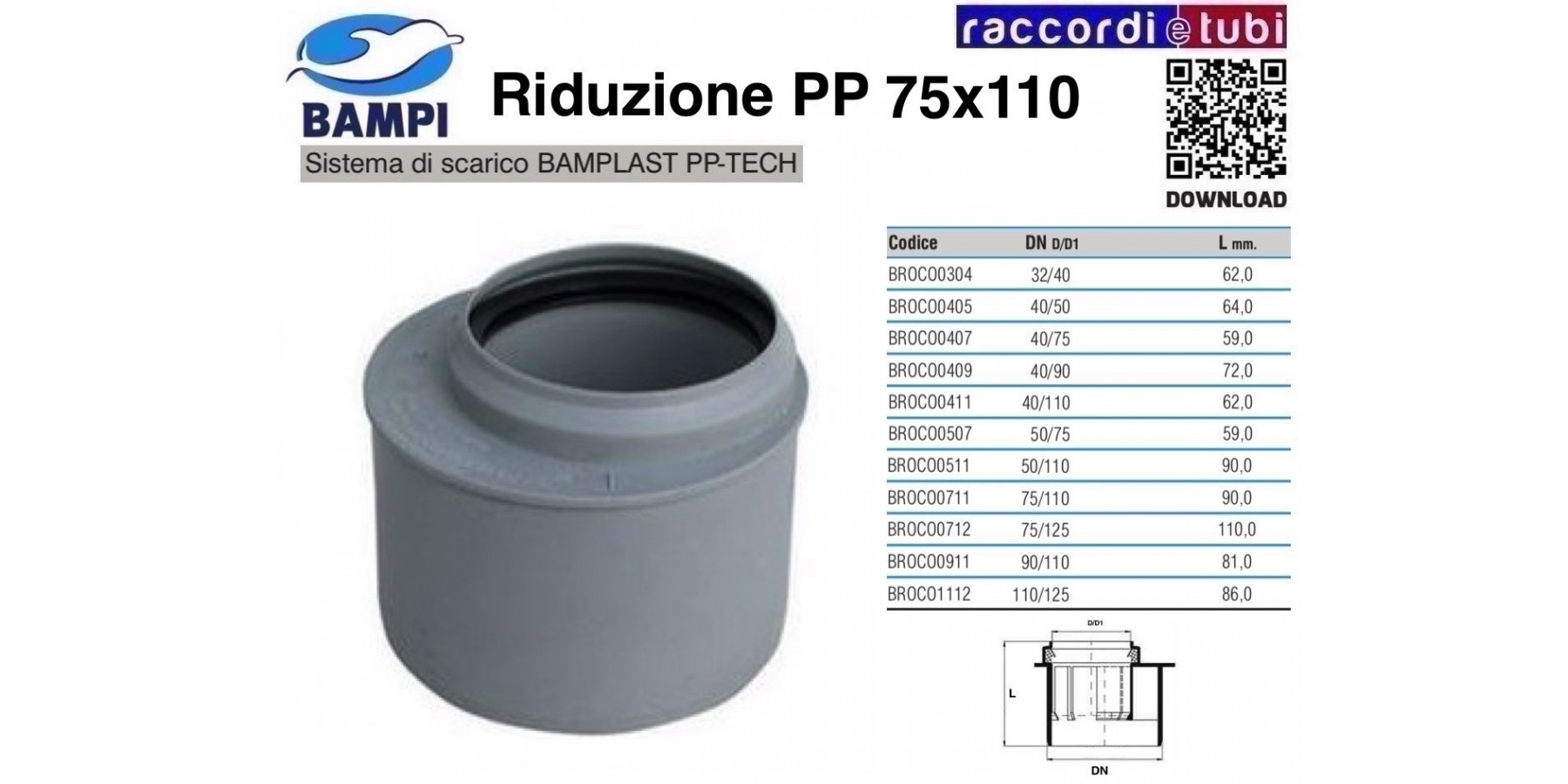 RIDUZIONE A INNESTO PP-H/MC MF 110X75