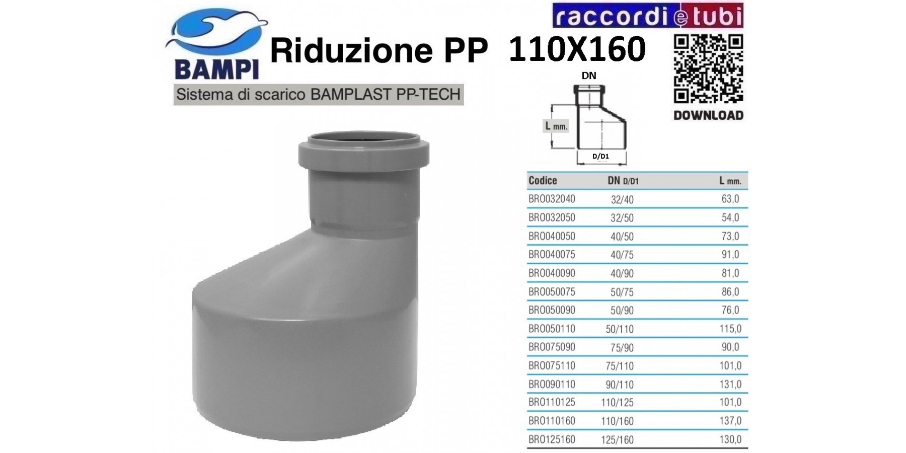 RIDUZIONE A INNESTO PP-H/MC MF 160X110