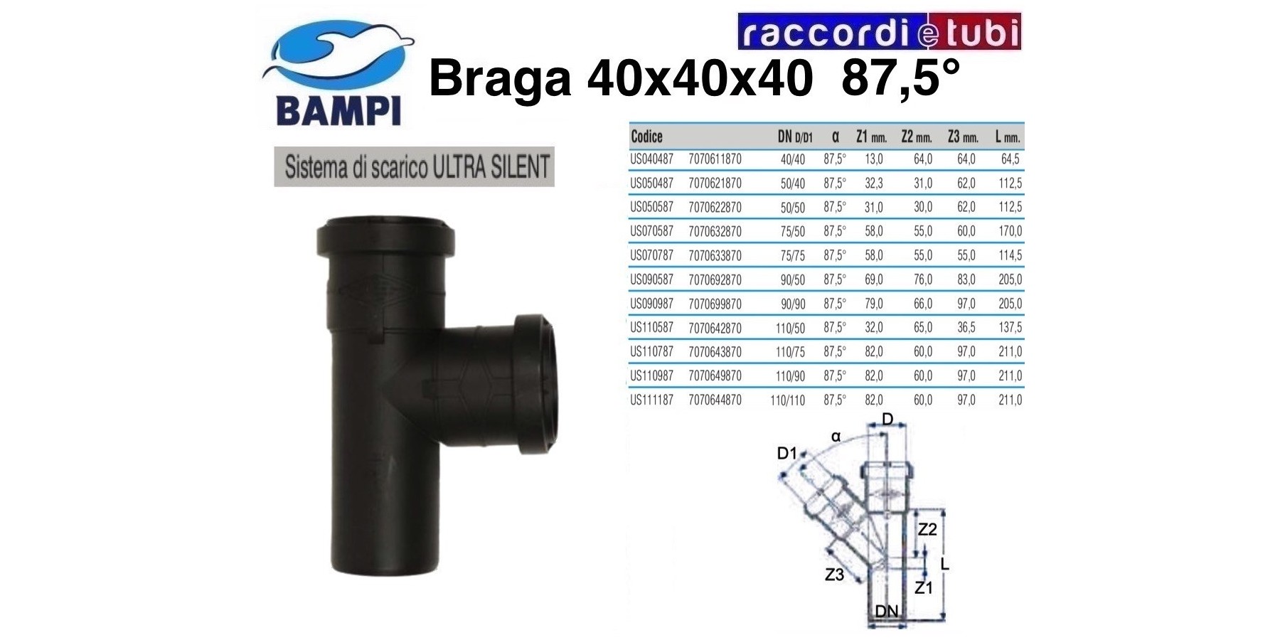 BRAGA A INNESTO ULTRA SILENT DIAM.40X40X40 87,5°