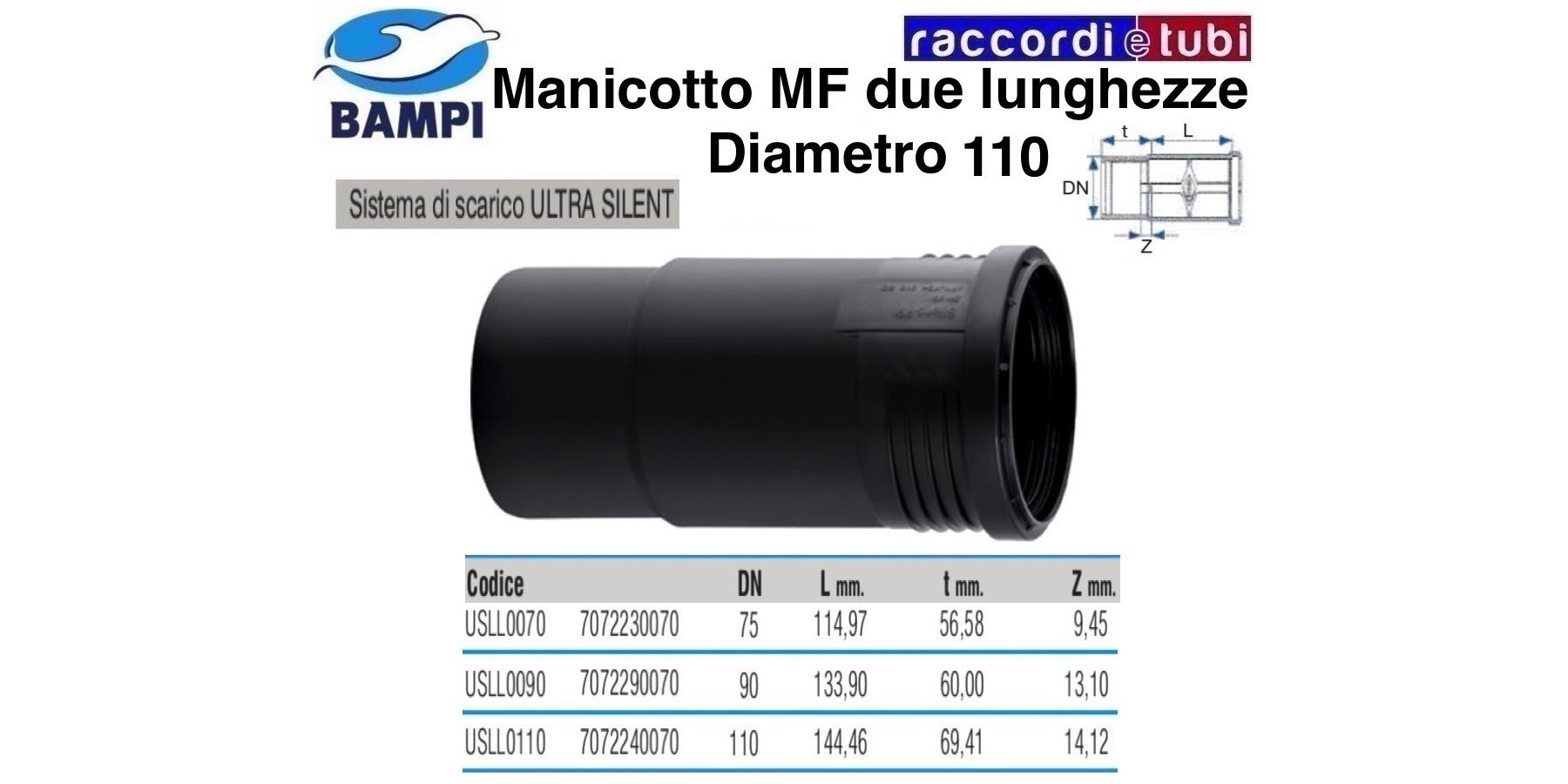 MANICOTTO A INNESTO MF 110 ULTRA SILENT DOPPIA PROFONDITA'